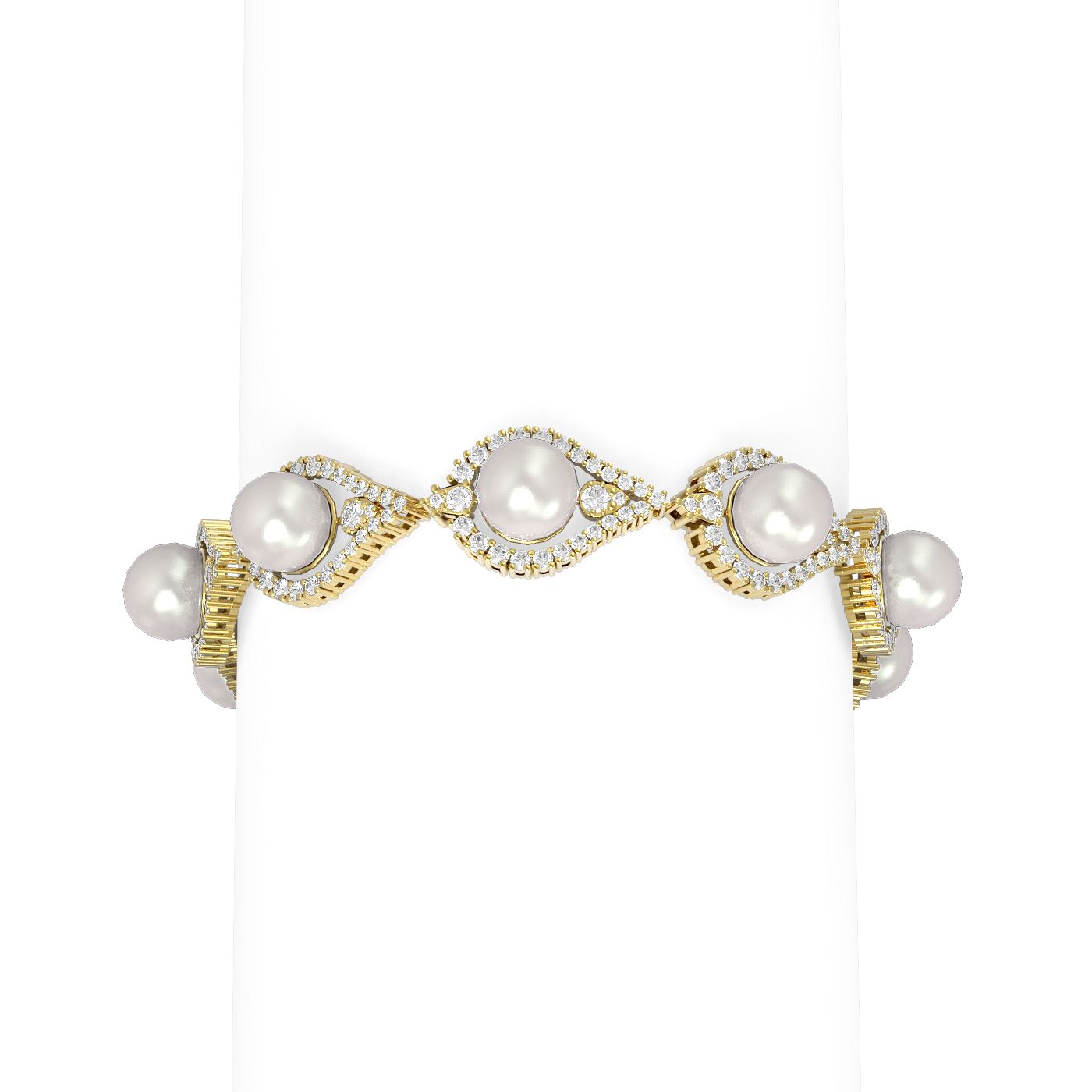 SKU: 61477 ---- 5.61 ctw Diamond & Pearl Bracelet 18K Yellow Gold