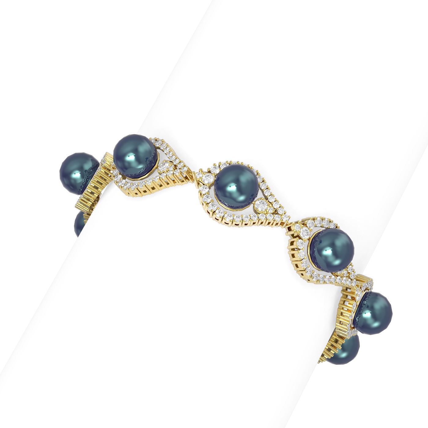 SKU: 61474 ---- 5.61 ctw Diamond & Pearl Bracelet 18K Yellow Gold