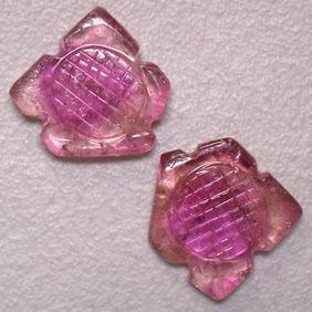PAIR OF CARVED TOURMALINE. THEY WEIGHT 5.64 CTS AND MEASURE 10x10 MM