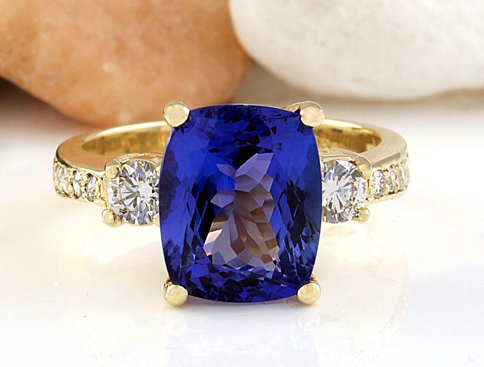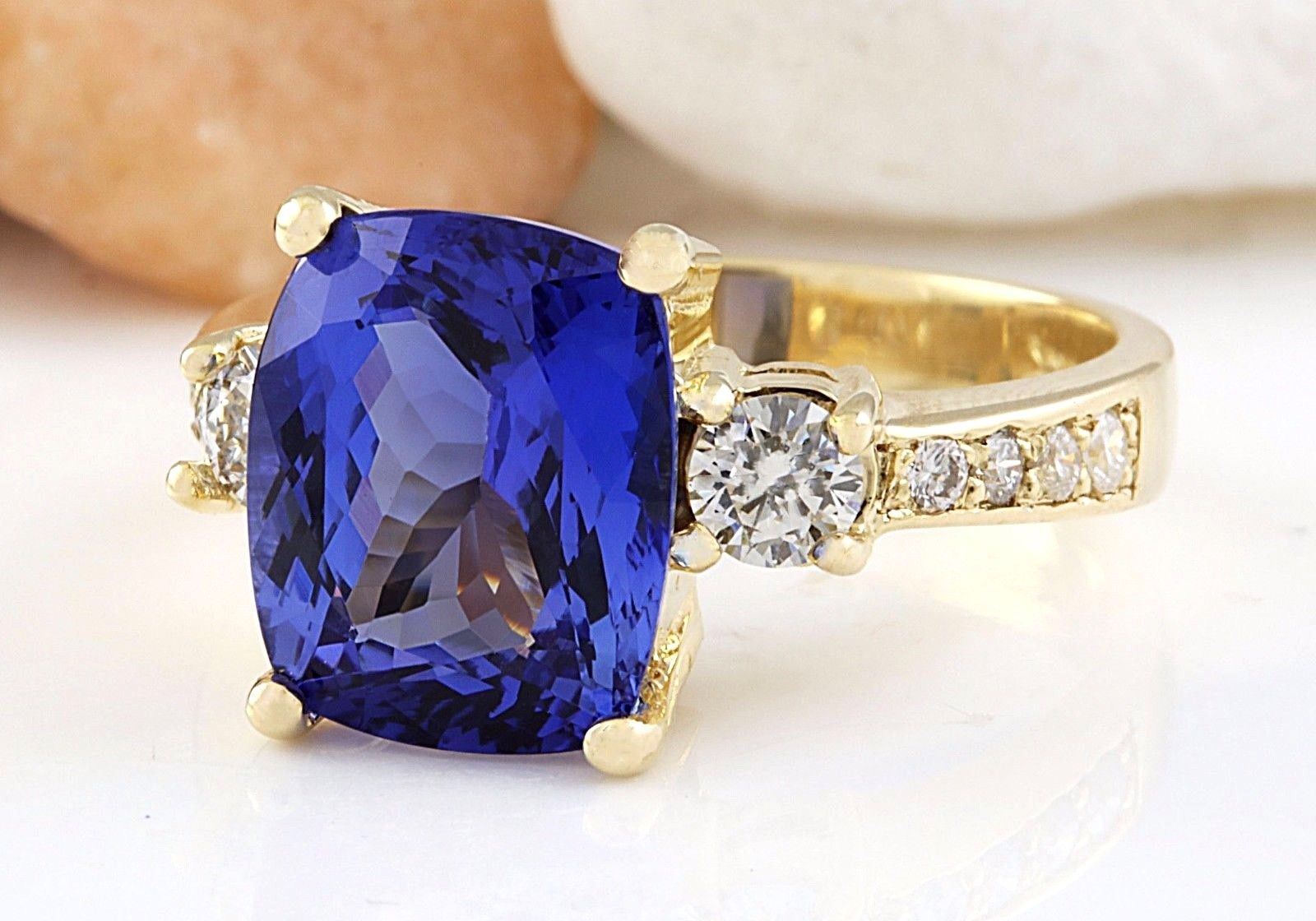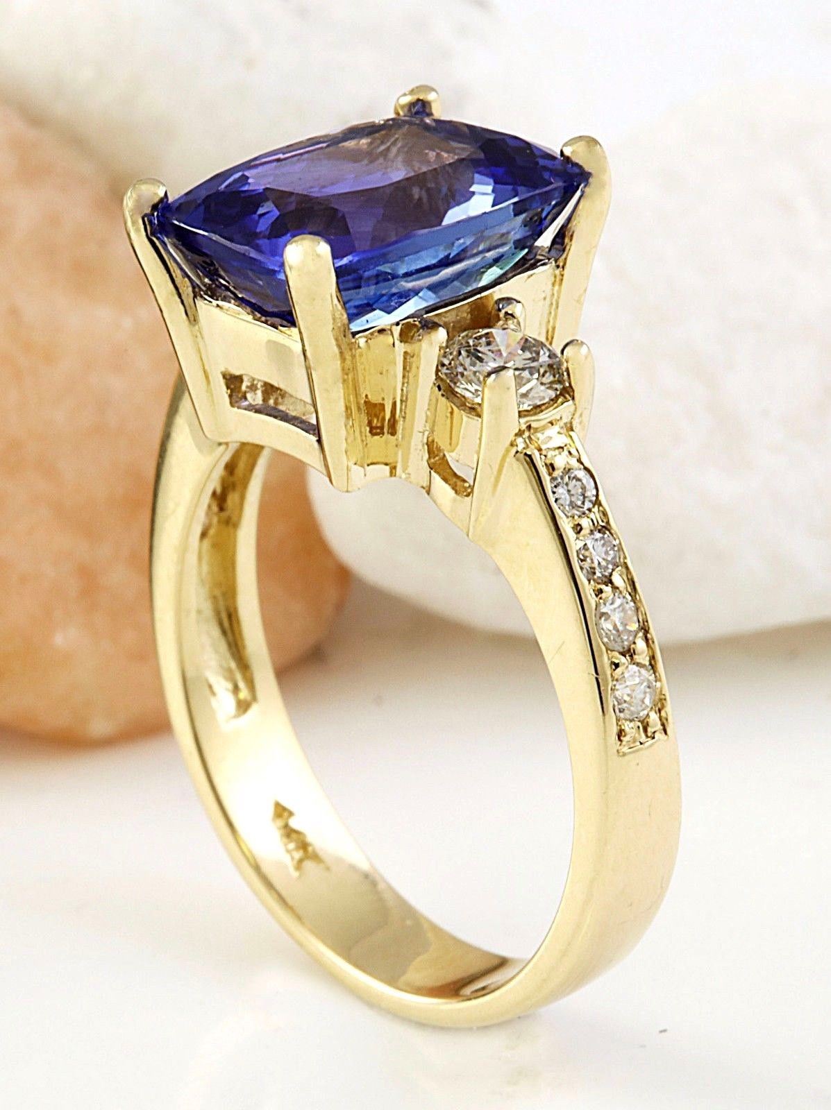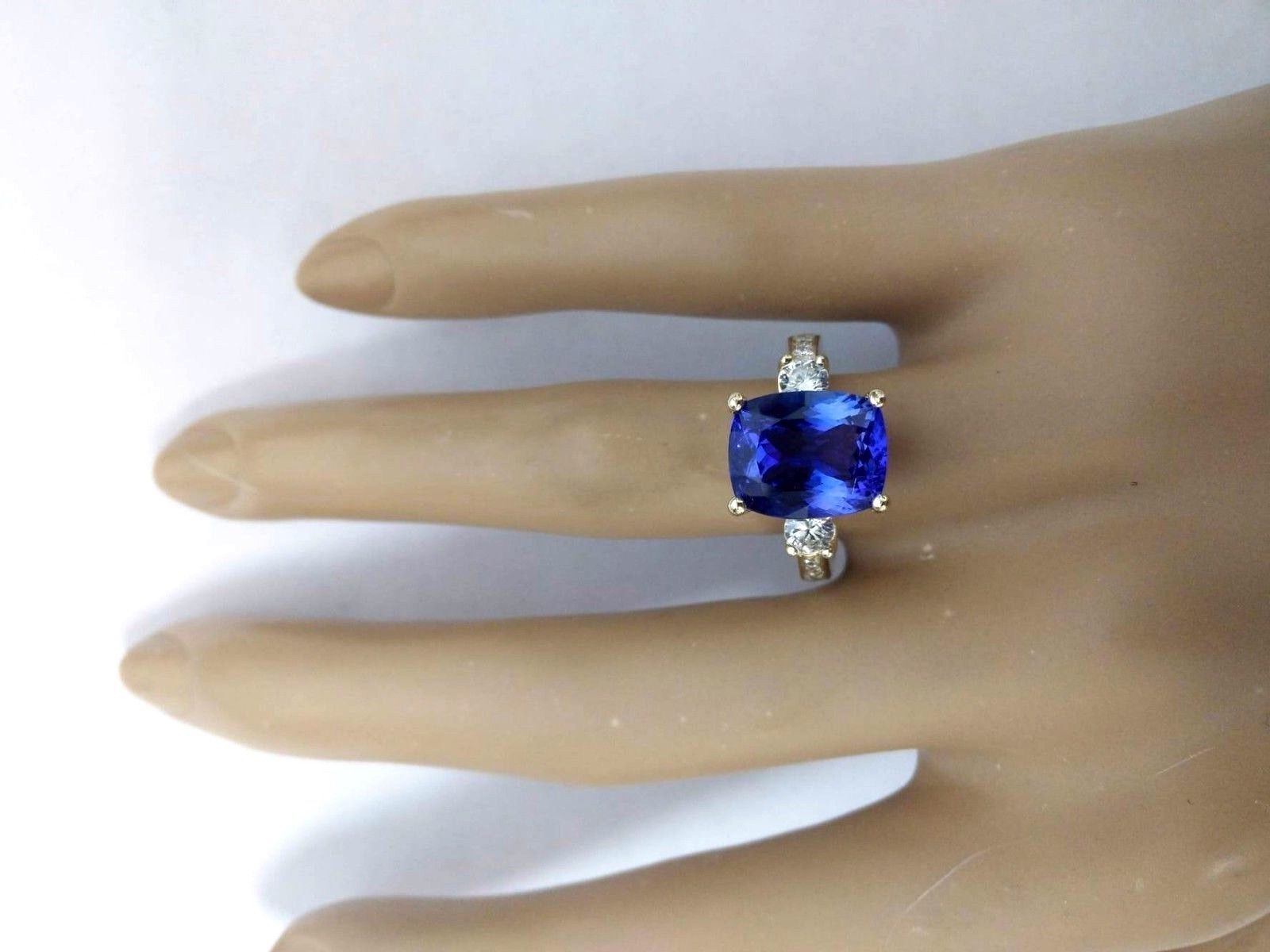5.65 Carat Natural Tanzanite 18K Solid Yellow Gold Diamond Ring