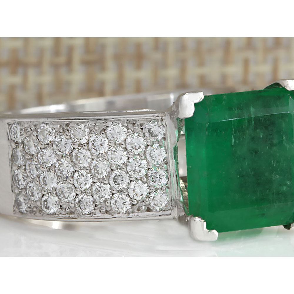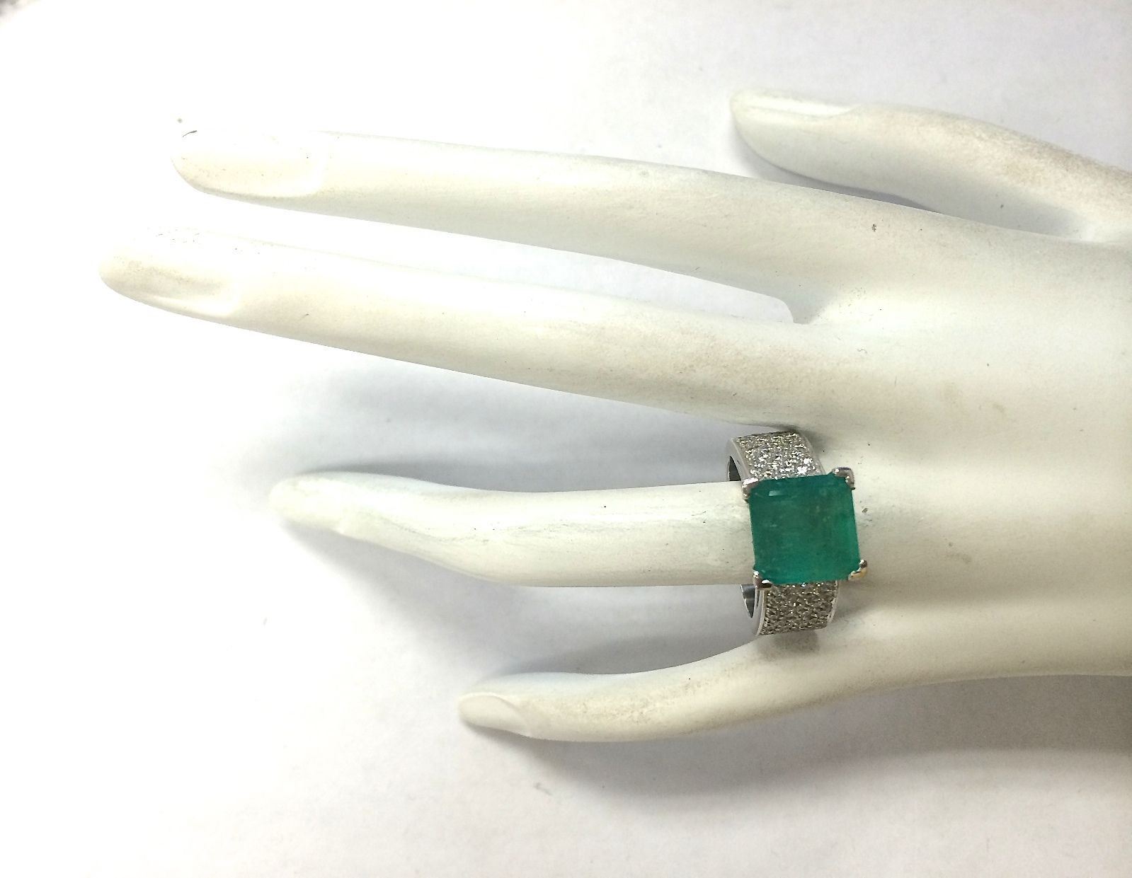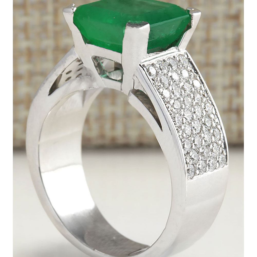 5.66 CTW Natural Emerald And Diamond Ring 18K Solid White Gold