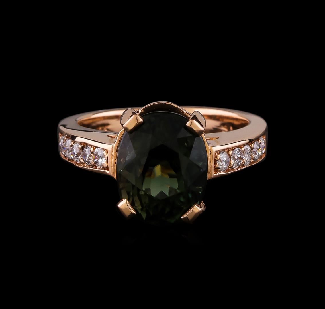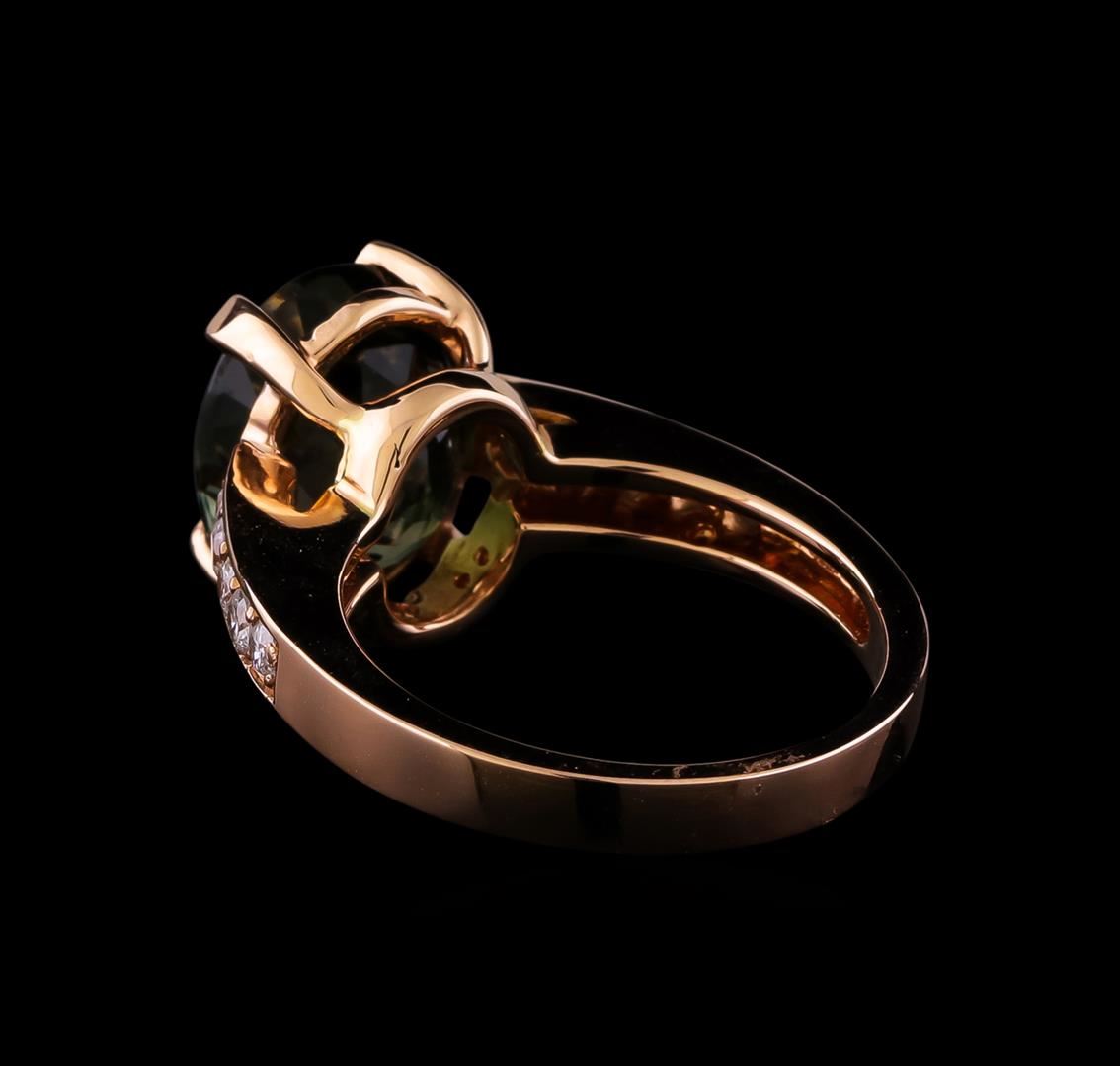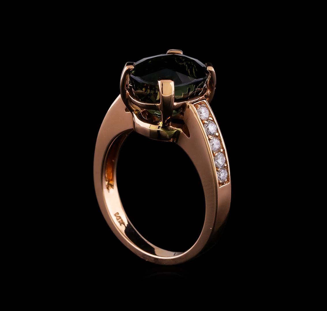 One ring: 14KT rose gold weighing 14.84gm containing tourmaline with a total weight of 5.66ct and diamonds weighing 0.35ctw.