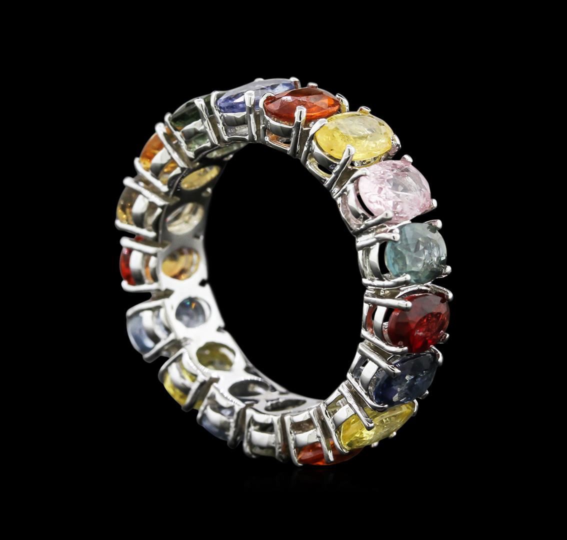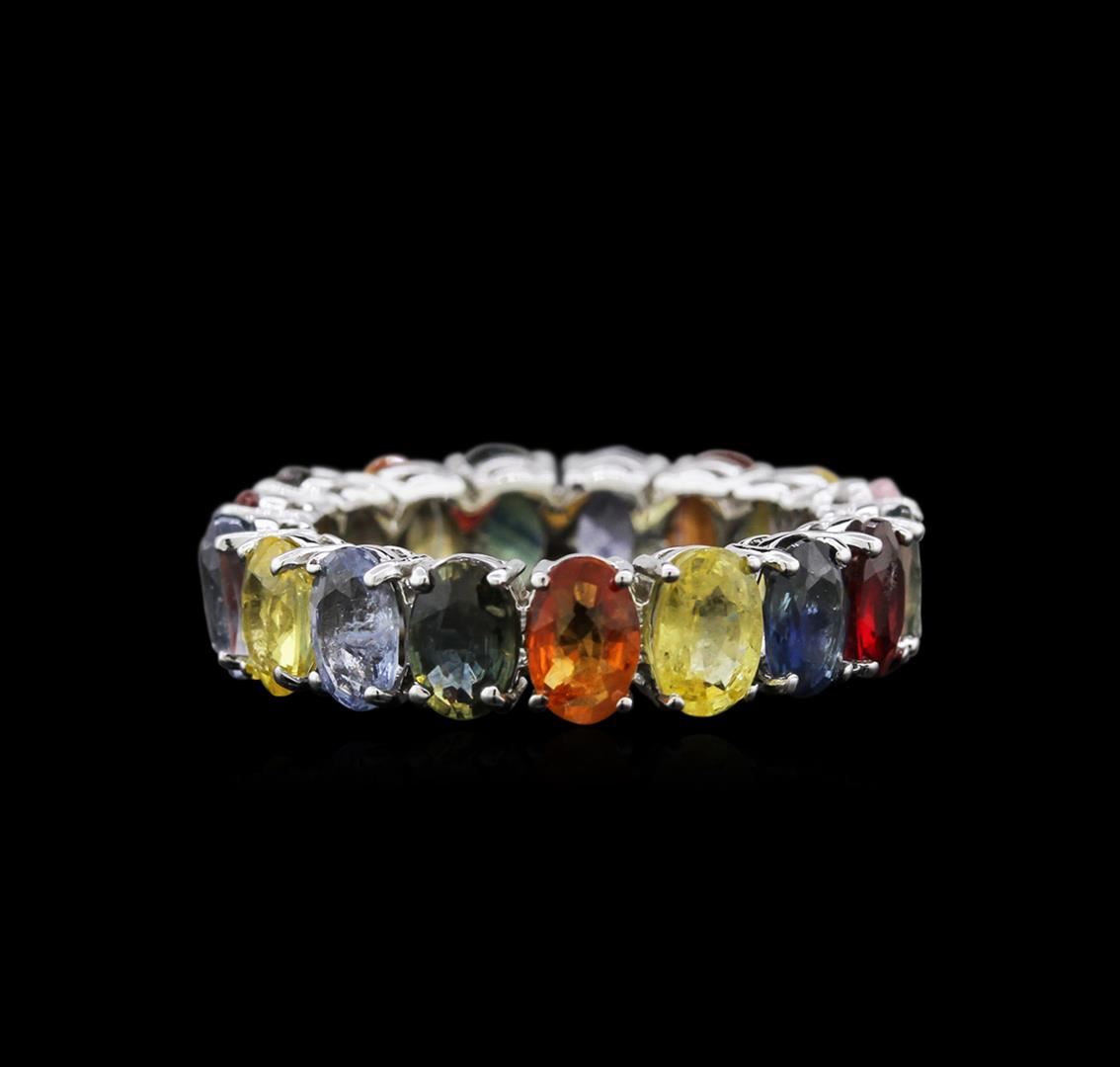 One ring featuring: 14KT white gold weighing 3.90 grams containing 17 multicolored sapphires with a total weight of 5.67ct.