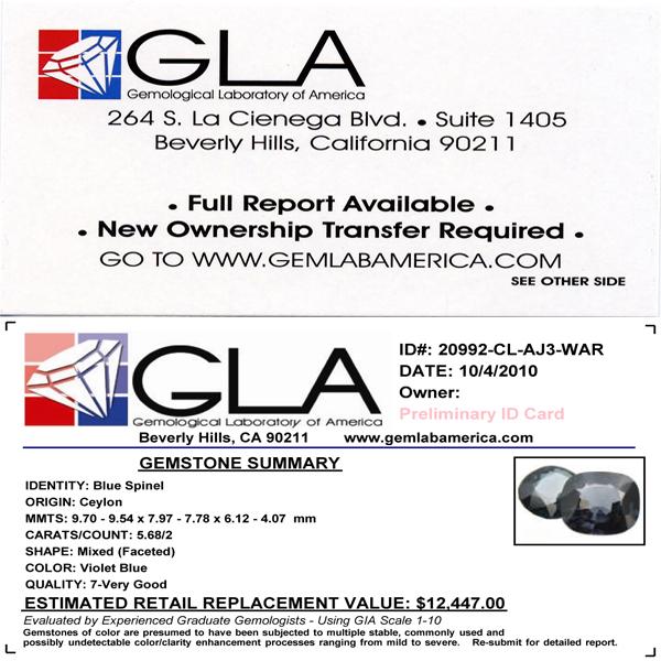 Excellent violet blue colored parcel 2 pieces mixed cut; lab quality evaluation 7; treatment as noted; Gem Guide wholesale $1704-$2840; full retail appraisal $12447; full lab evaluation available