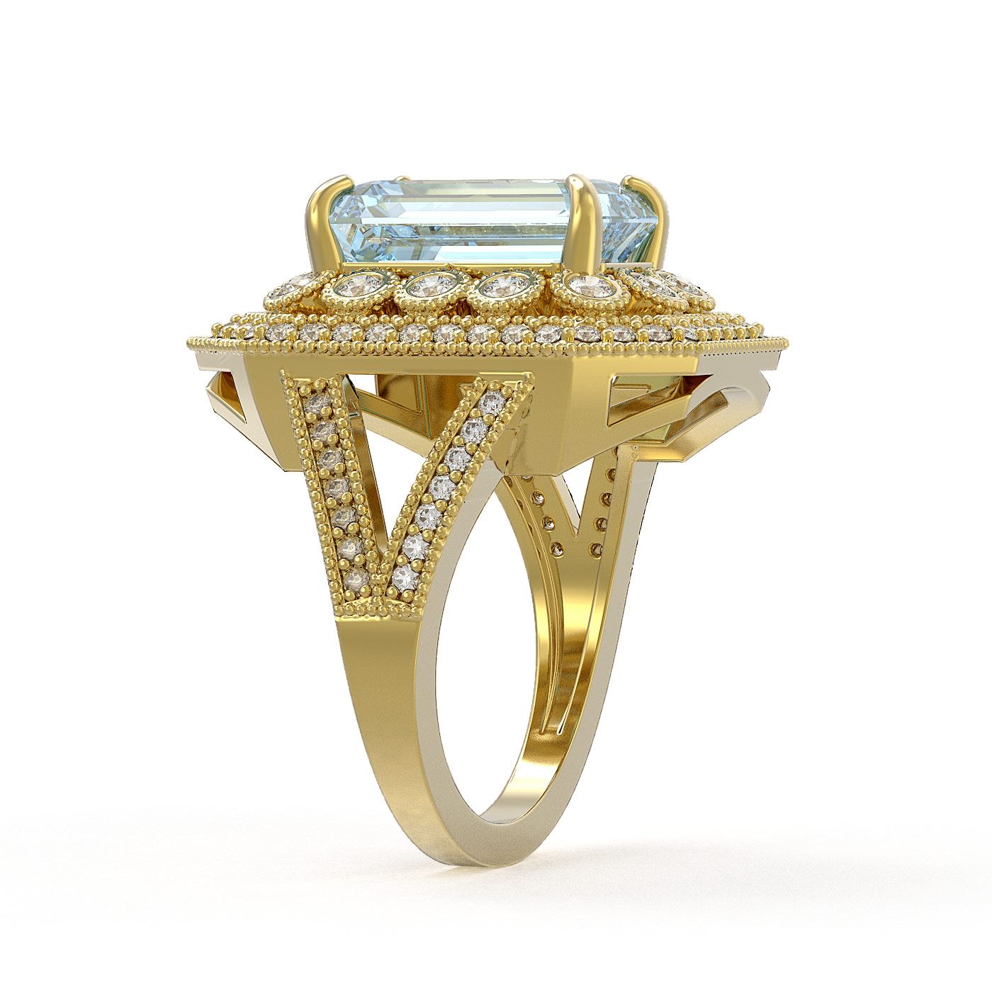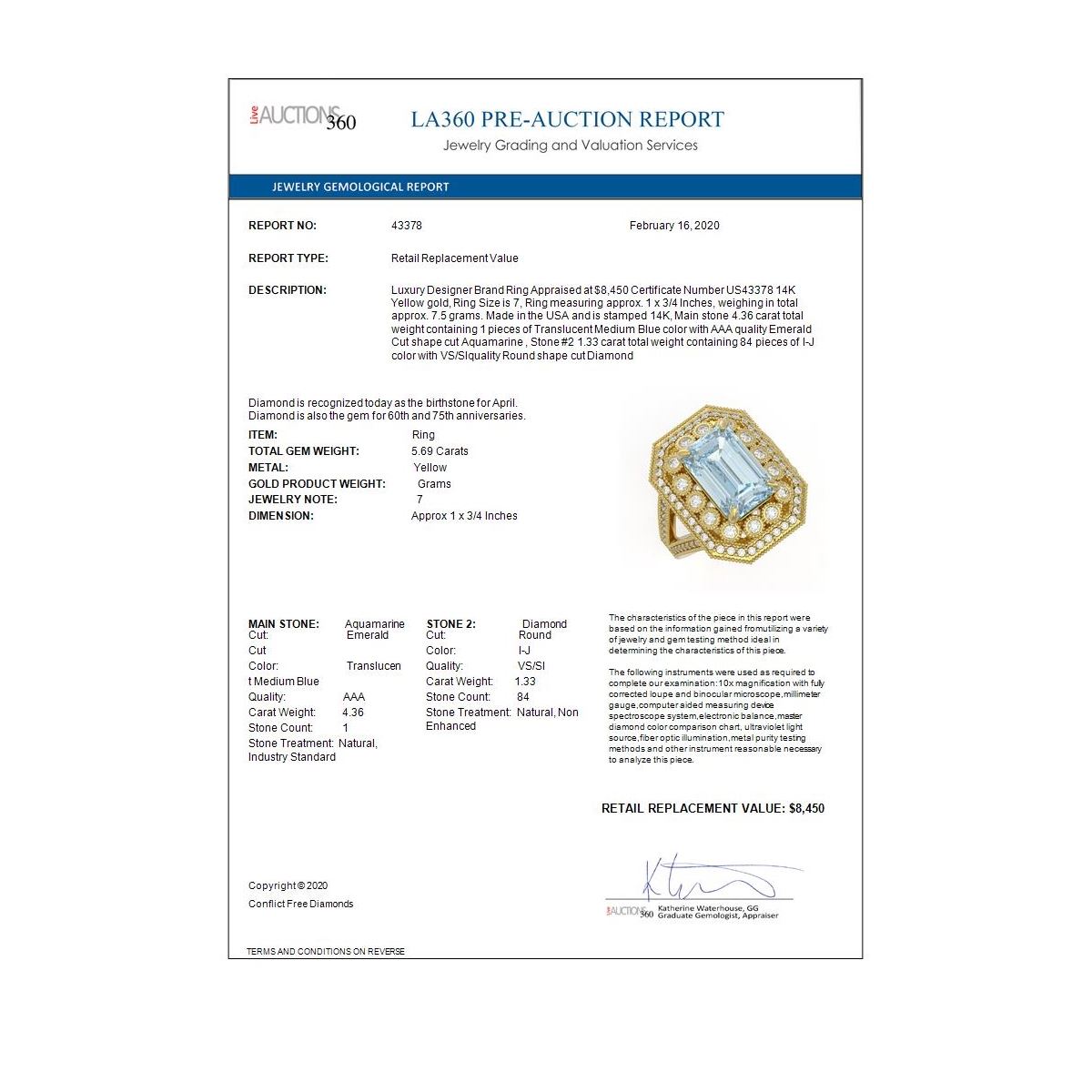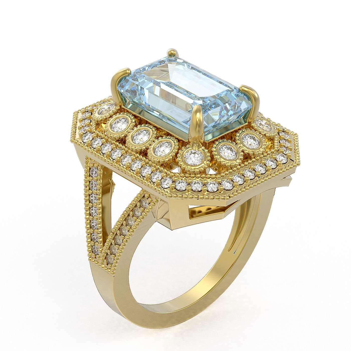 REF-170W9H - SKU: 43378 ---- 5.69 ctw Certified Aquamarine & Diamond Victorian Ring 14K Yellow Gold