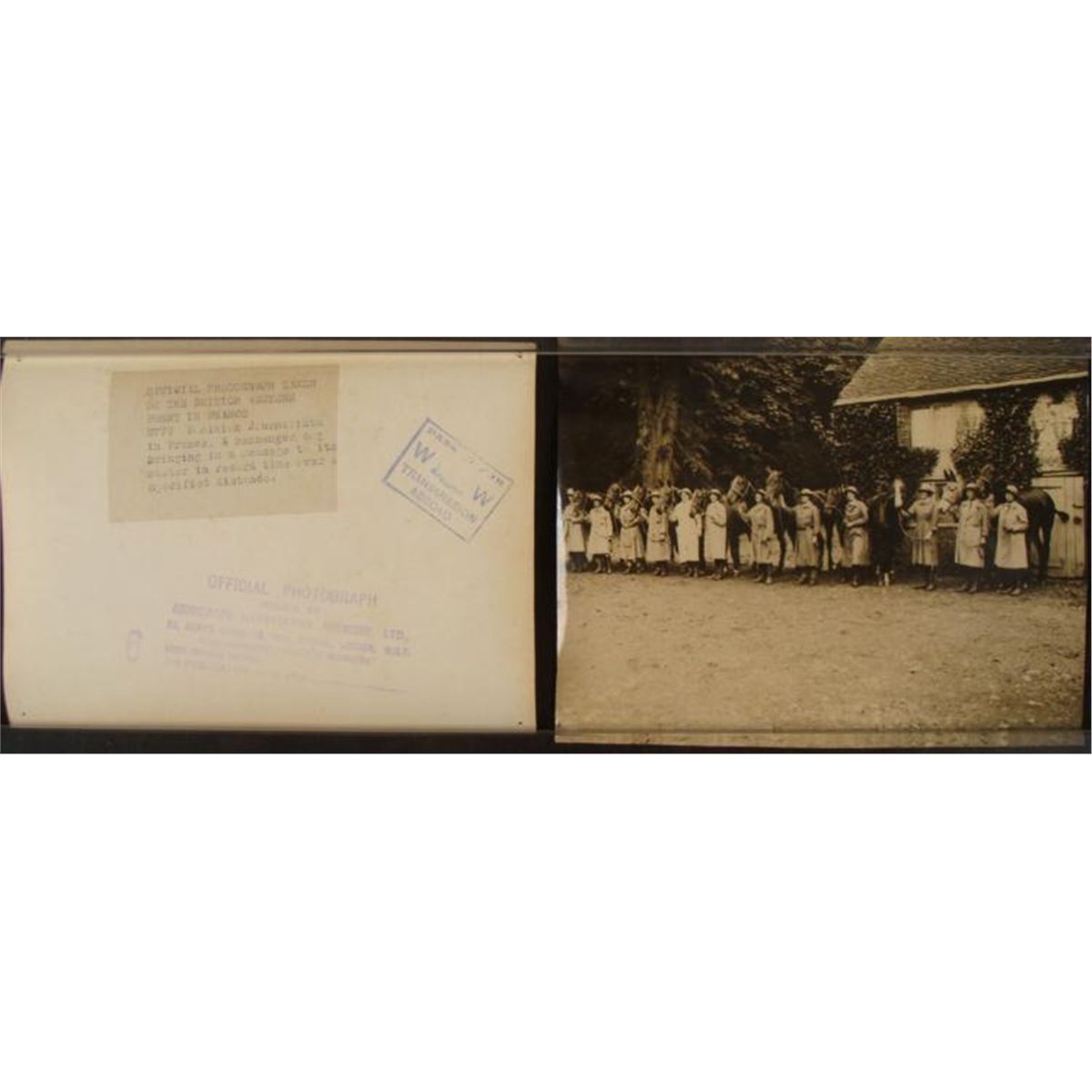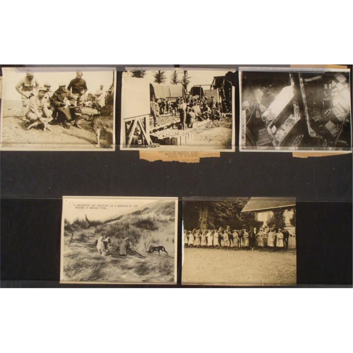 5 6x8 WWI BRIT PRESS RELEASE PHOTOS ON WESTERN FRONT-ORIG * MESSENGER DOG & TROOPS IN FRANCE--ROYAL ENGINEERS WORK ON WATER SYSTEM--WOMEN LINED UP WITH CAVALRY HORSES--RECON PIC OF GERMAN OF TORPEDO BOATS & SUBS--FRENCH & BRIT TOMMIES PLAY WITH LEFT BEHIND GOATS *