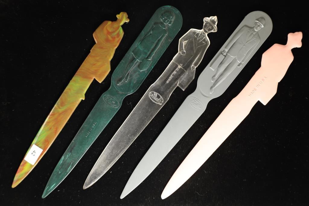 LETTER OPENERS, ALL DIFFERENT COLORS, 4 MEN AND 1 WOMAN
