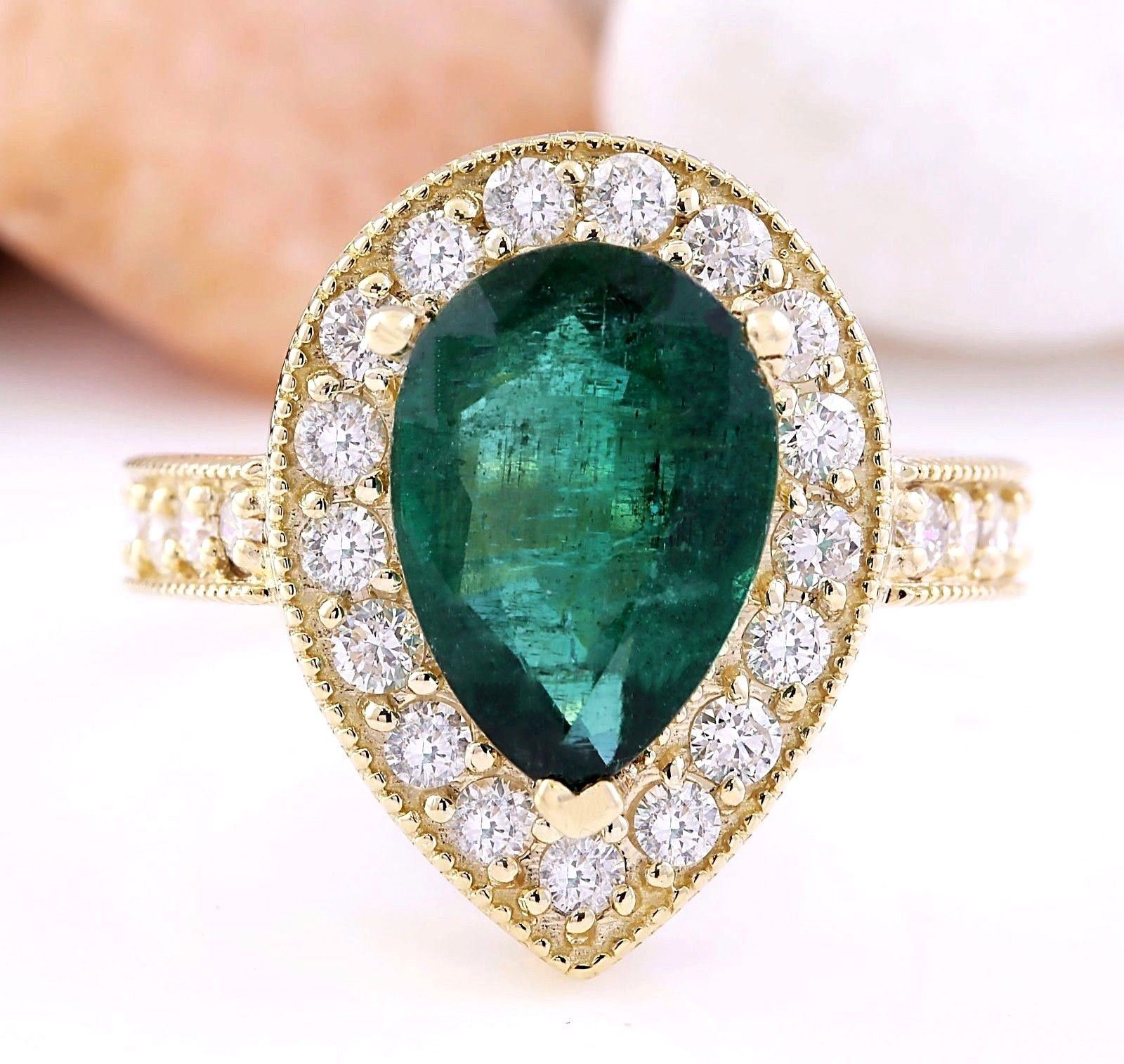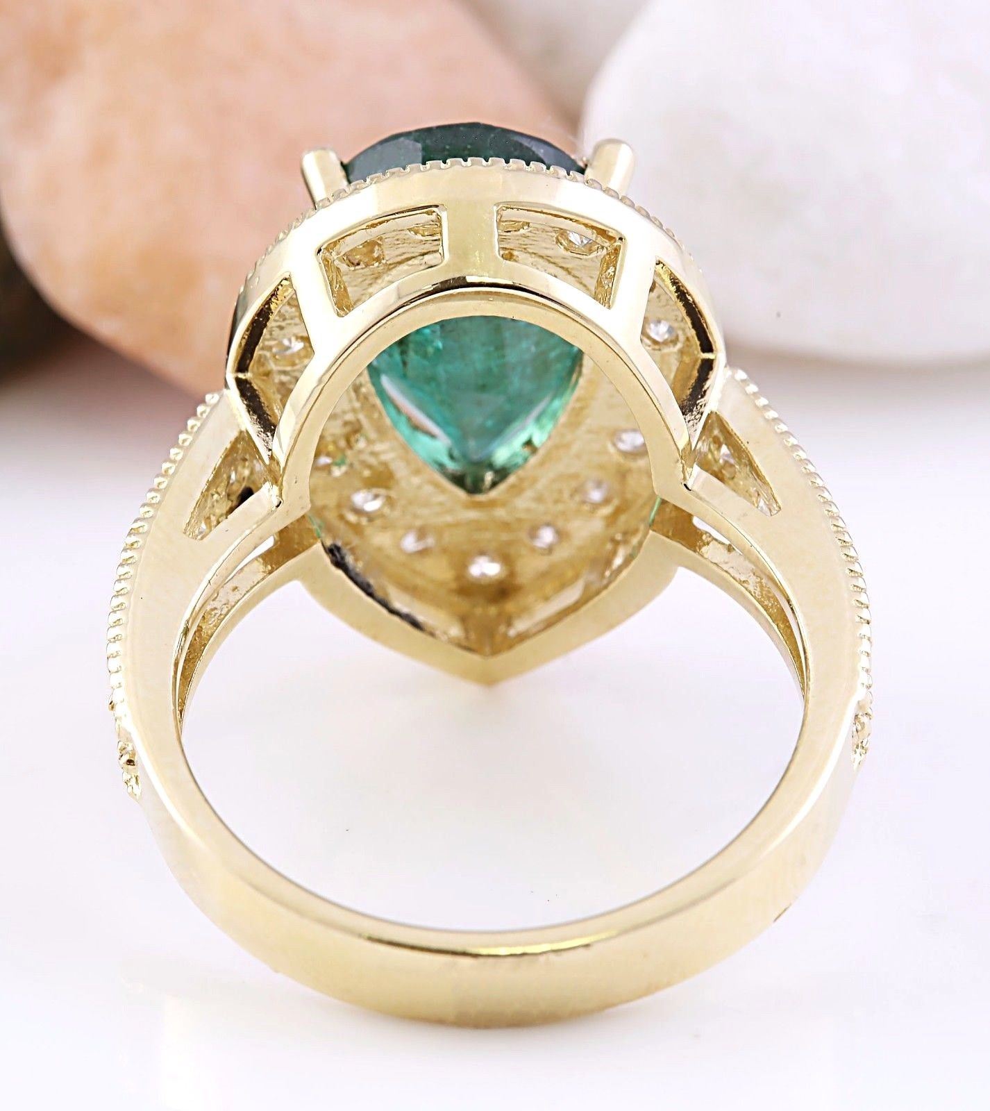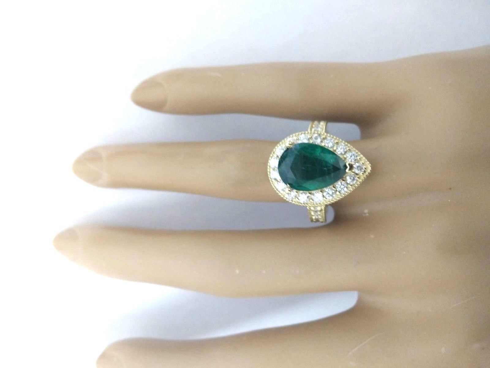 5.70 Carat Natural Emerald 18K Solid Yellow Gold Diamond Ring