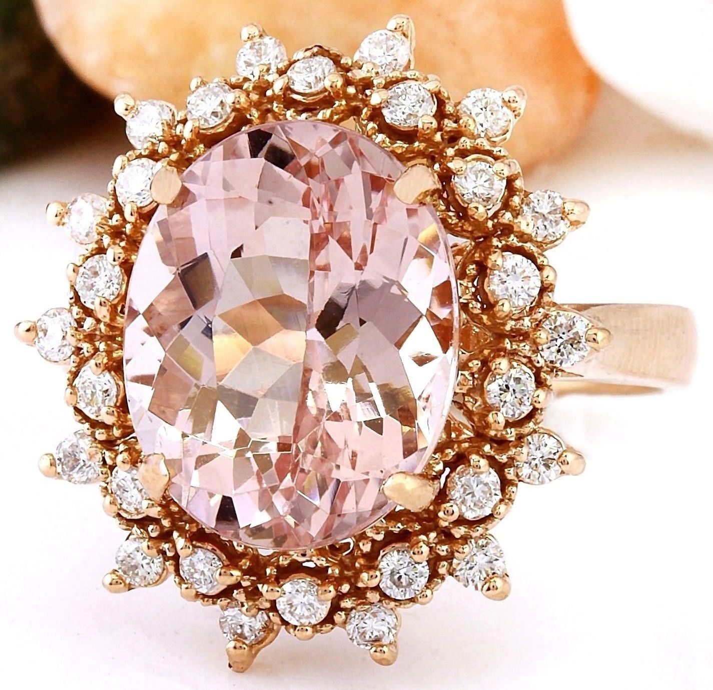 5.70 Carat Natural Morganite 14K Solid Rose Gold Diamond Ring