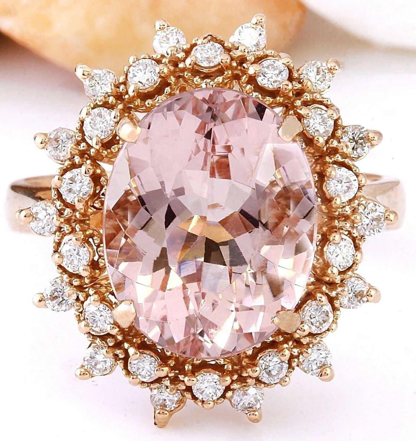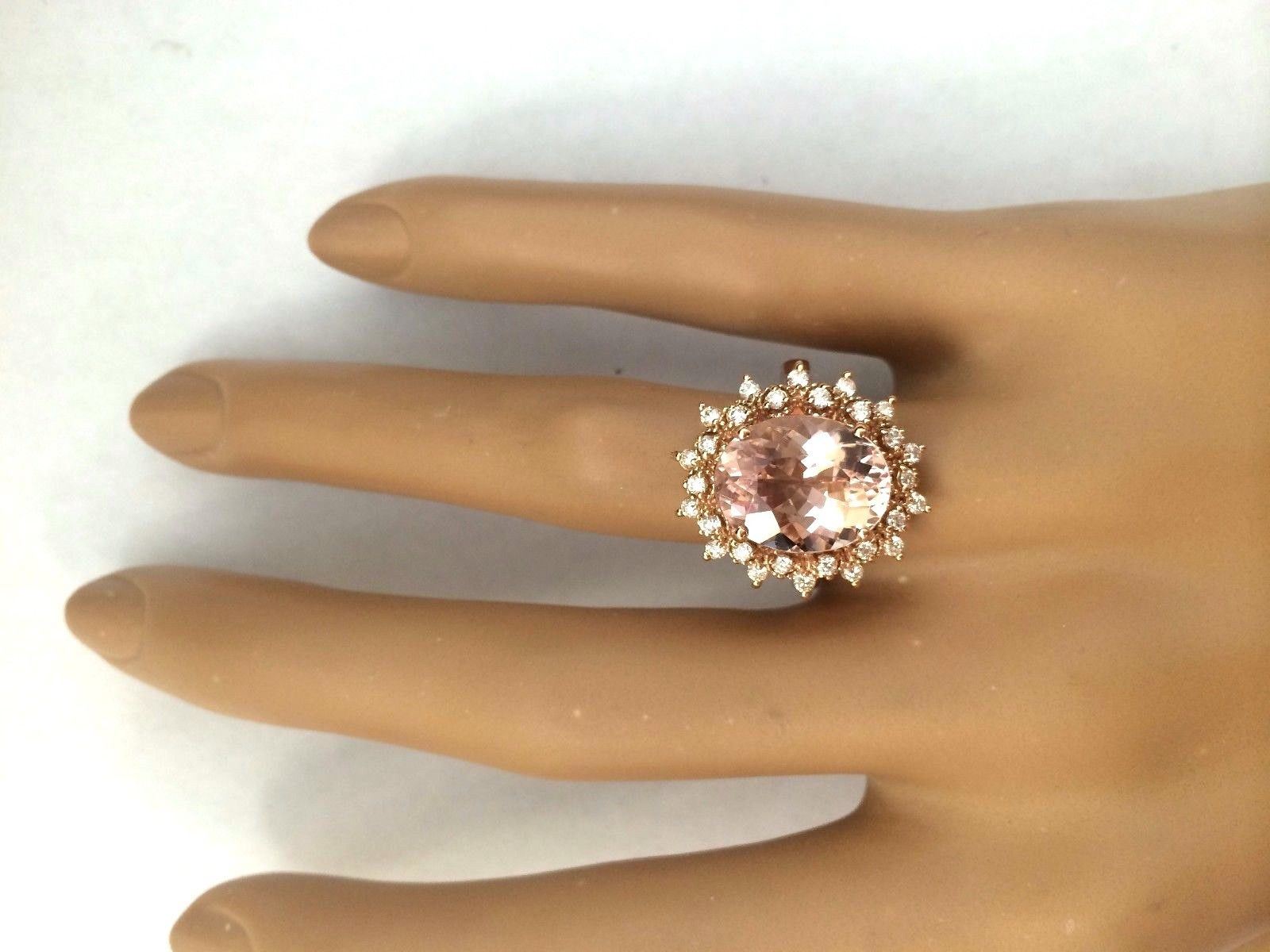 5.70 Carat Natural Morganite 18K Solid Rose Gold Diamond Ring