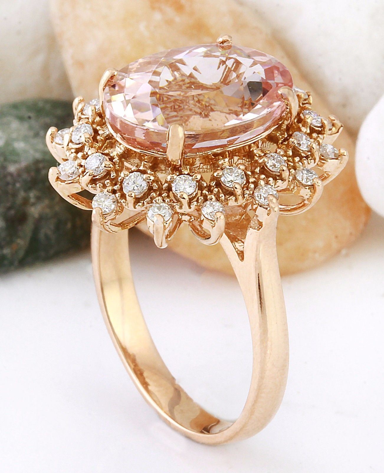 5.70 Carat Natural Morganite 18K Solid Rose Gold Diamond Ring