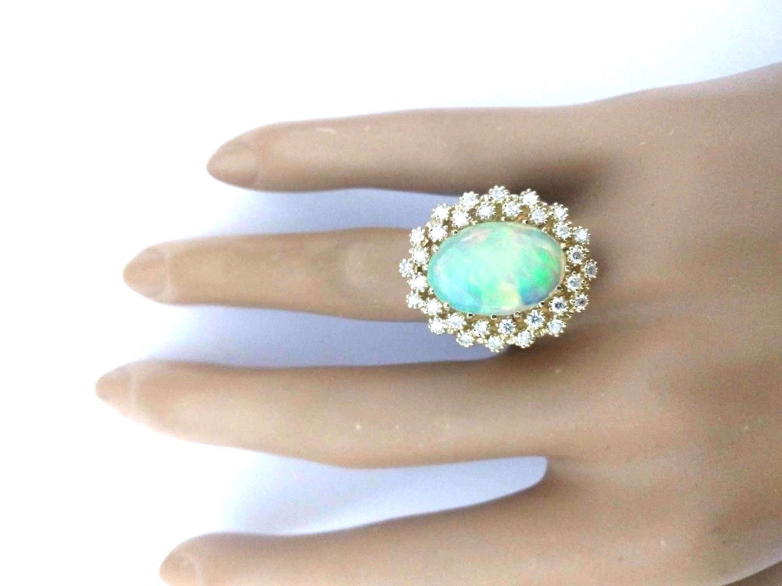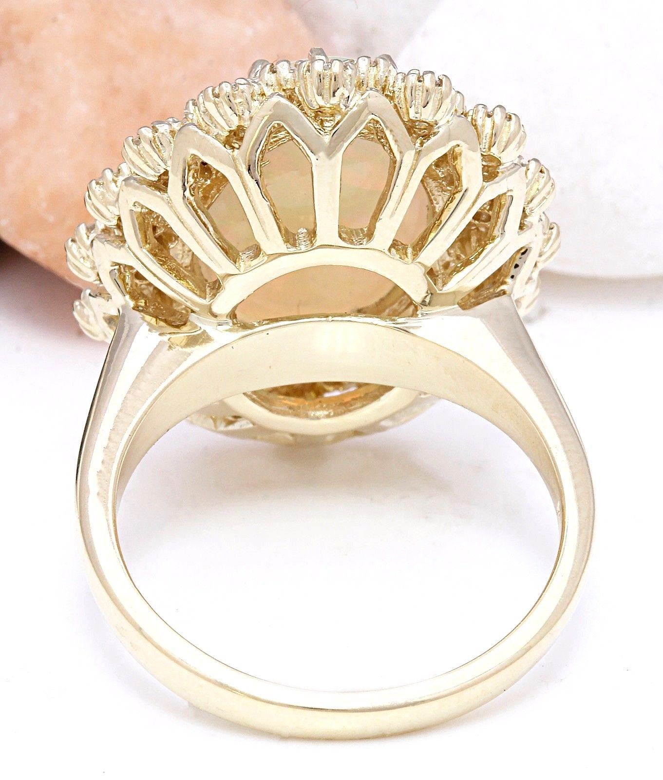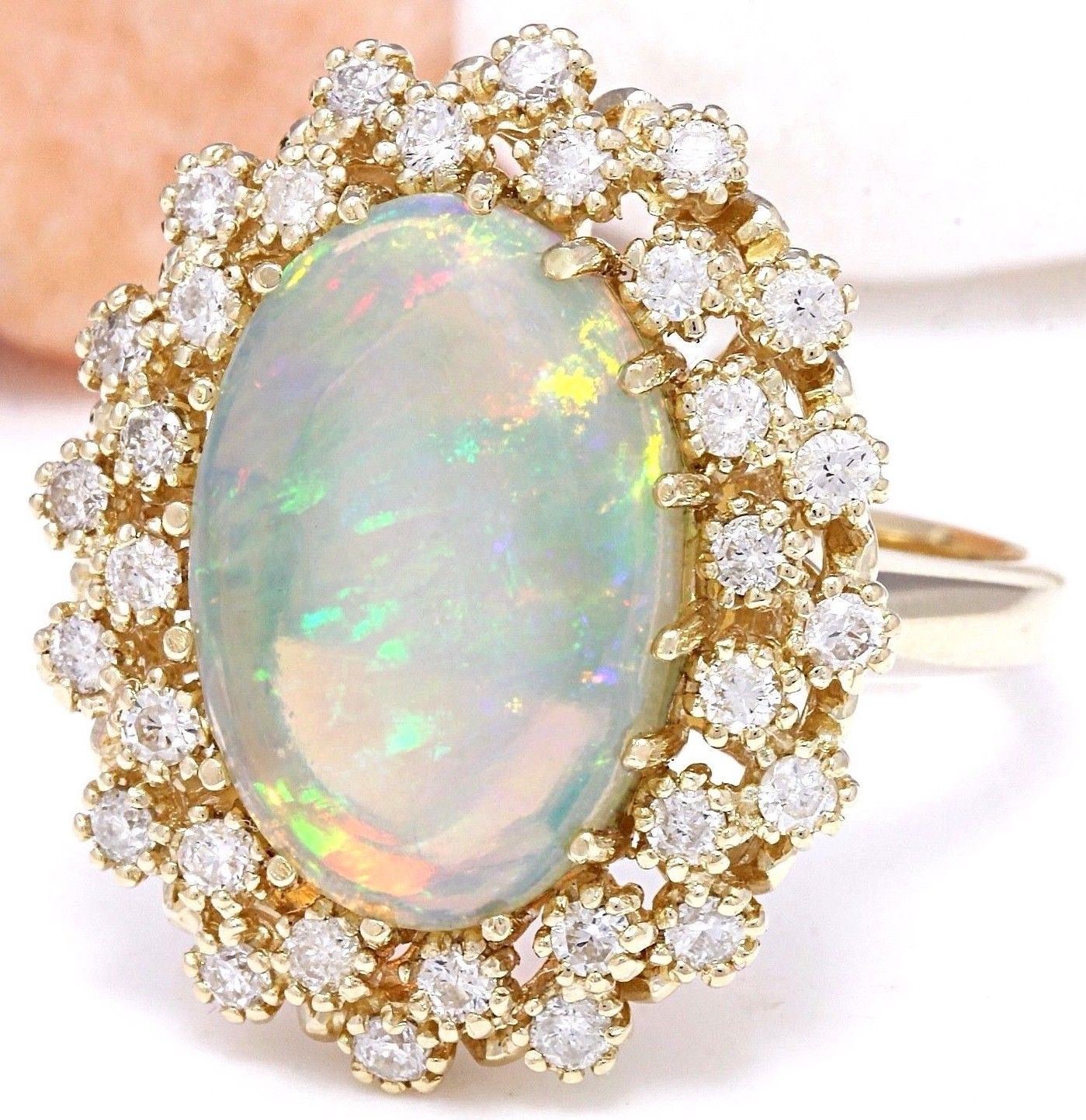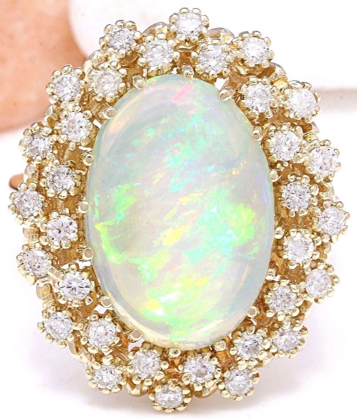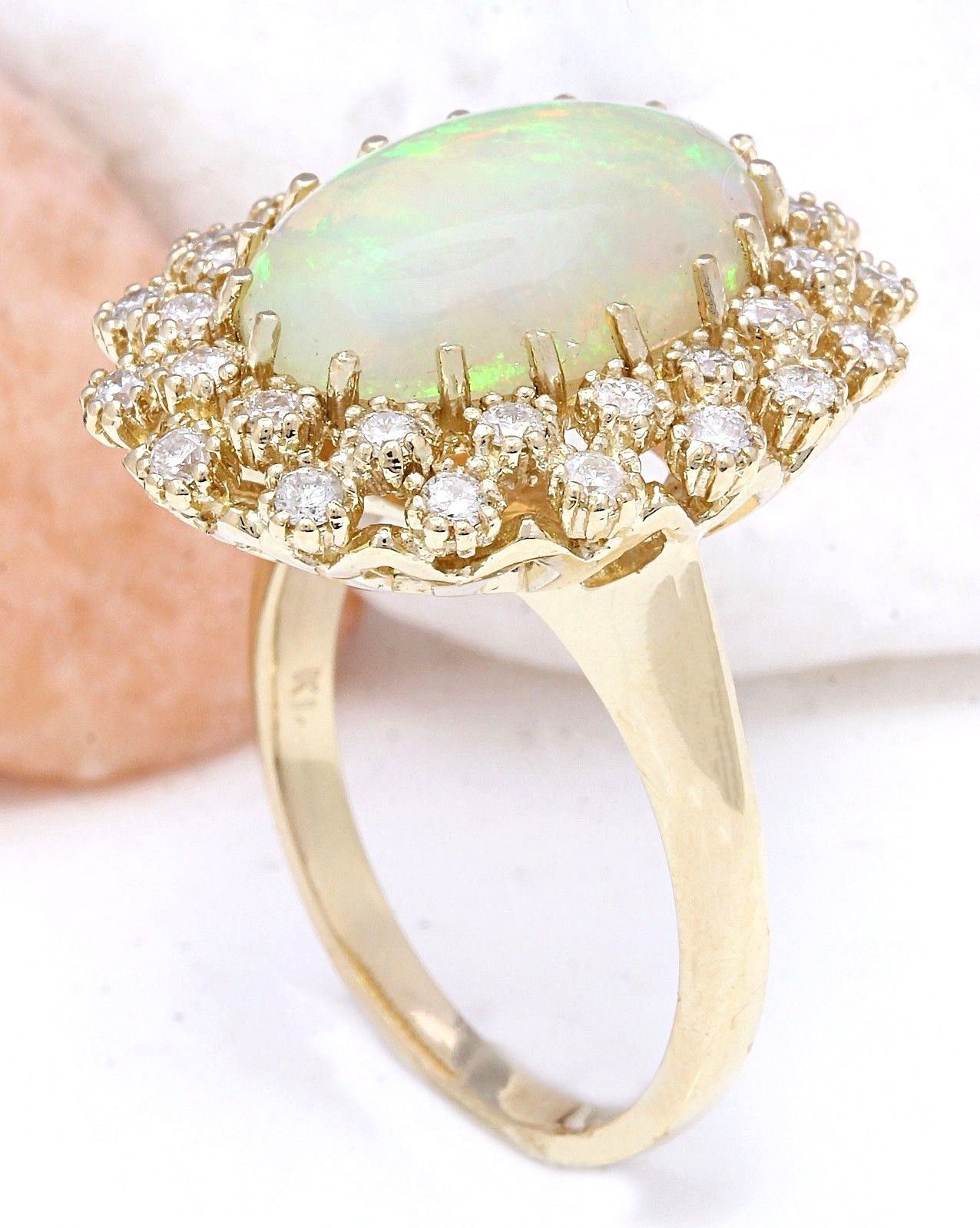 5.70 Carat Natural Opal 14K Solid Yellow Gold Diamond Ring