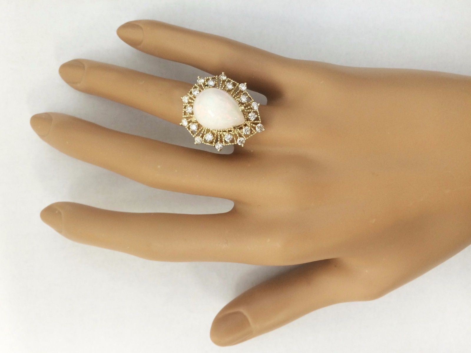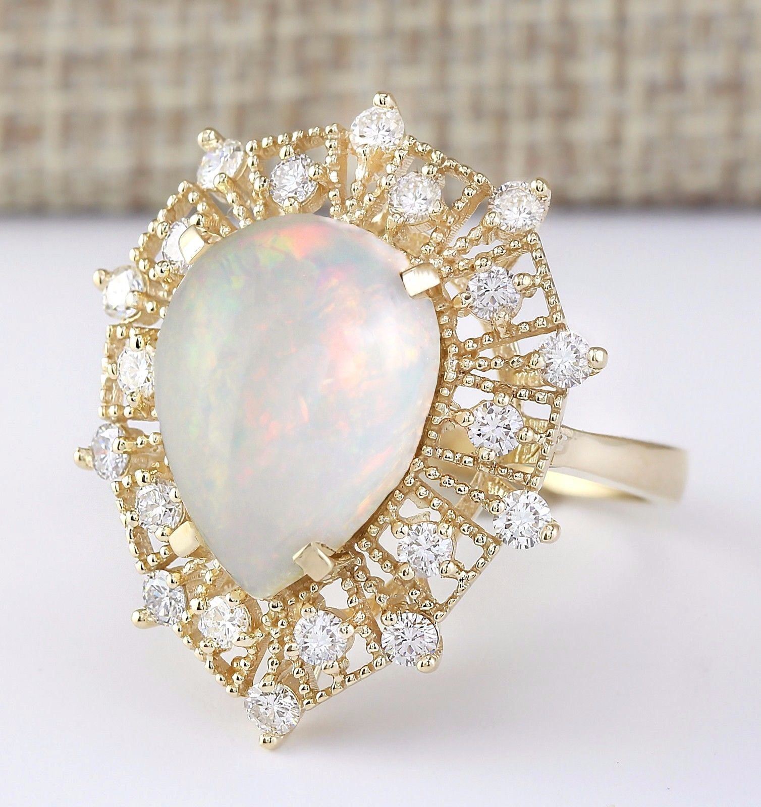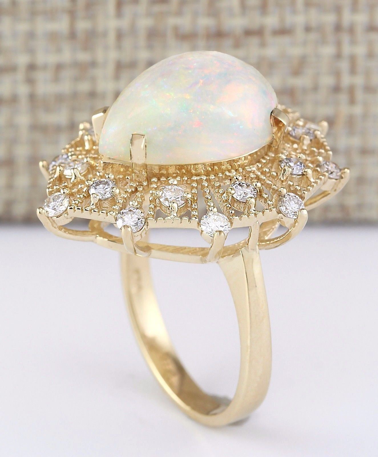 5.70 CTW Natural Opal And Diamond Ring In 14k Yellow Gold