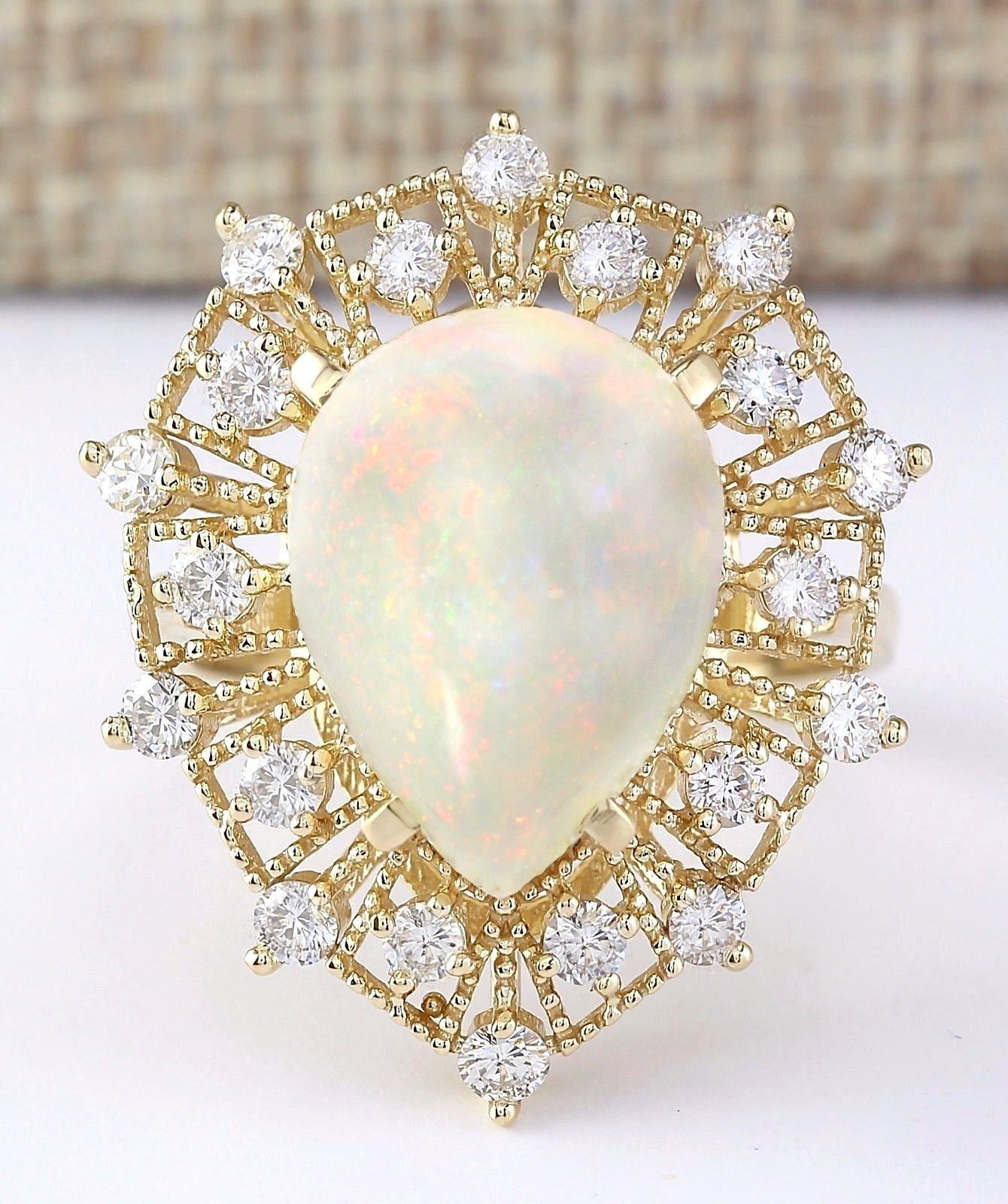 5.70 CTW Natural Opal And Diamond Ring In 18K Yellow Gold