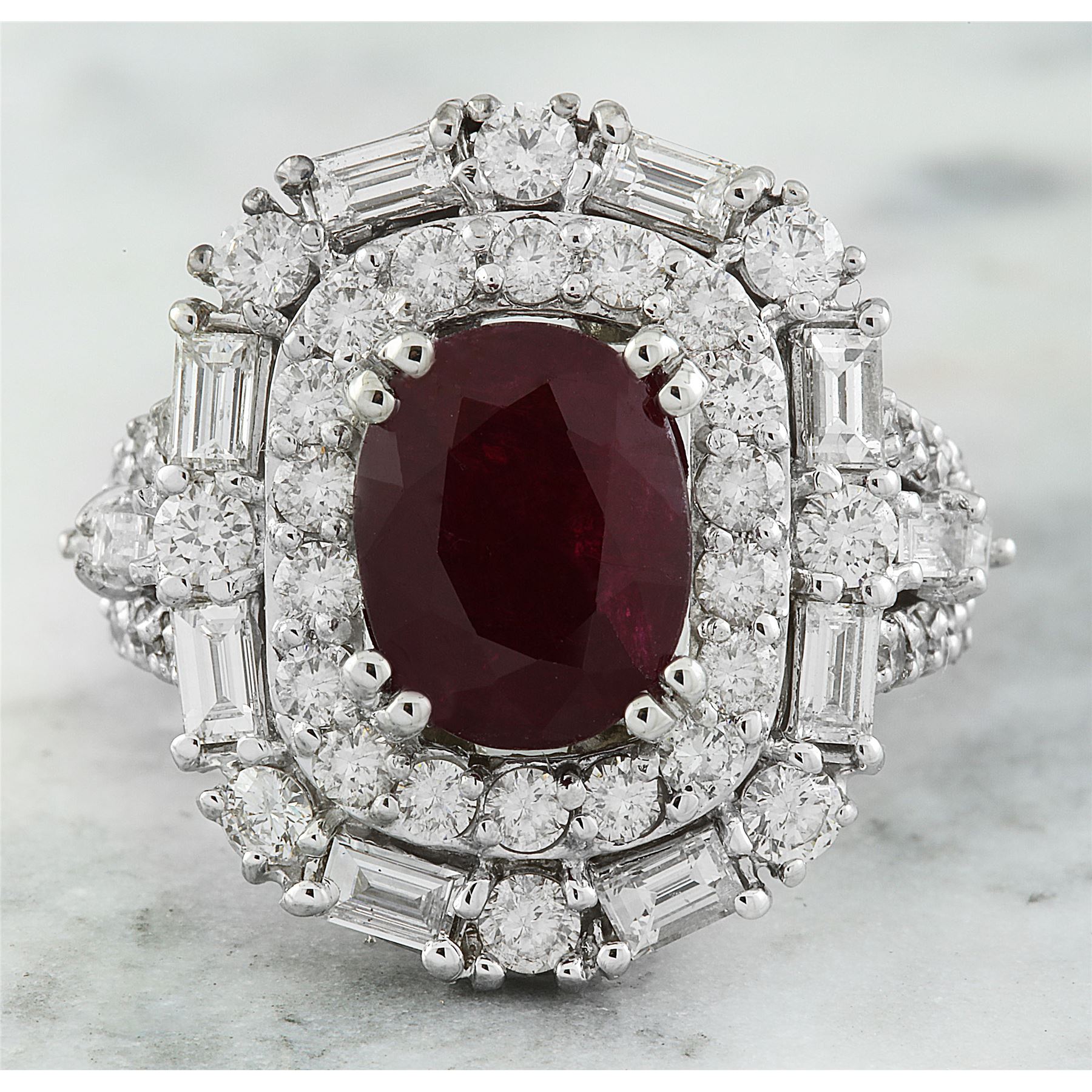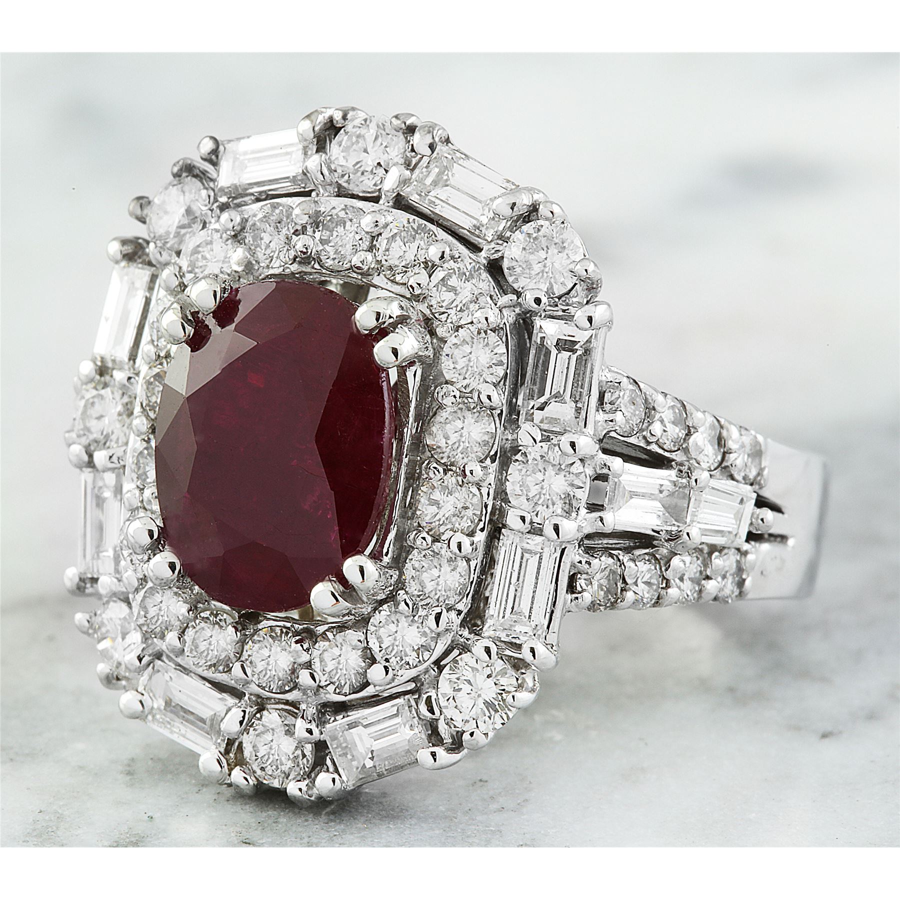 5.70 CTW Ruby 18K White Gold Diamond Ring