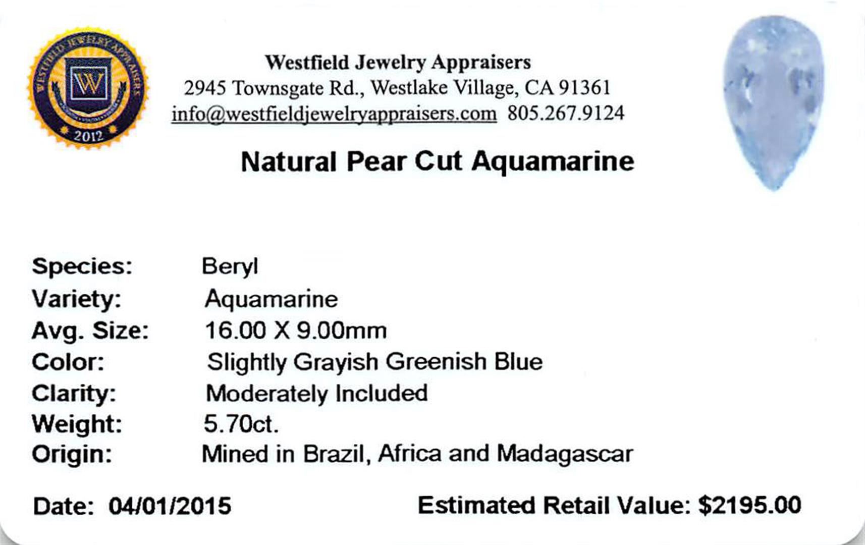 One 5.70ct Pear Aquamarine Parcel.