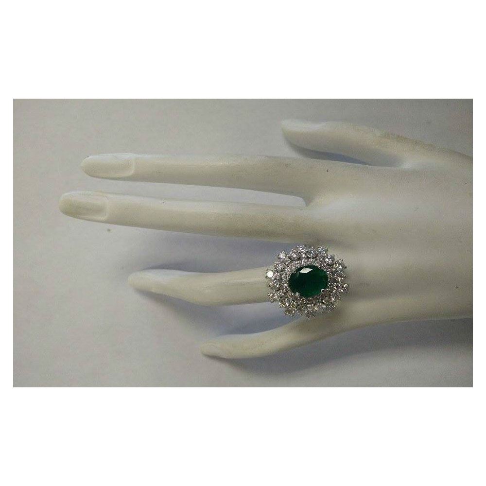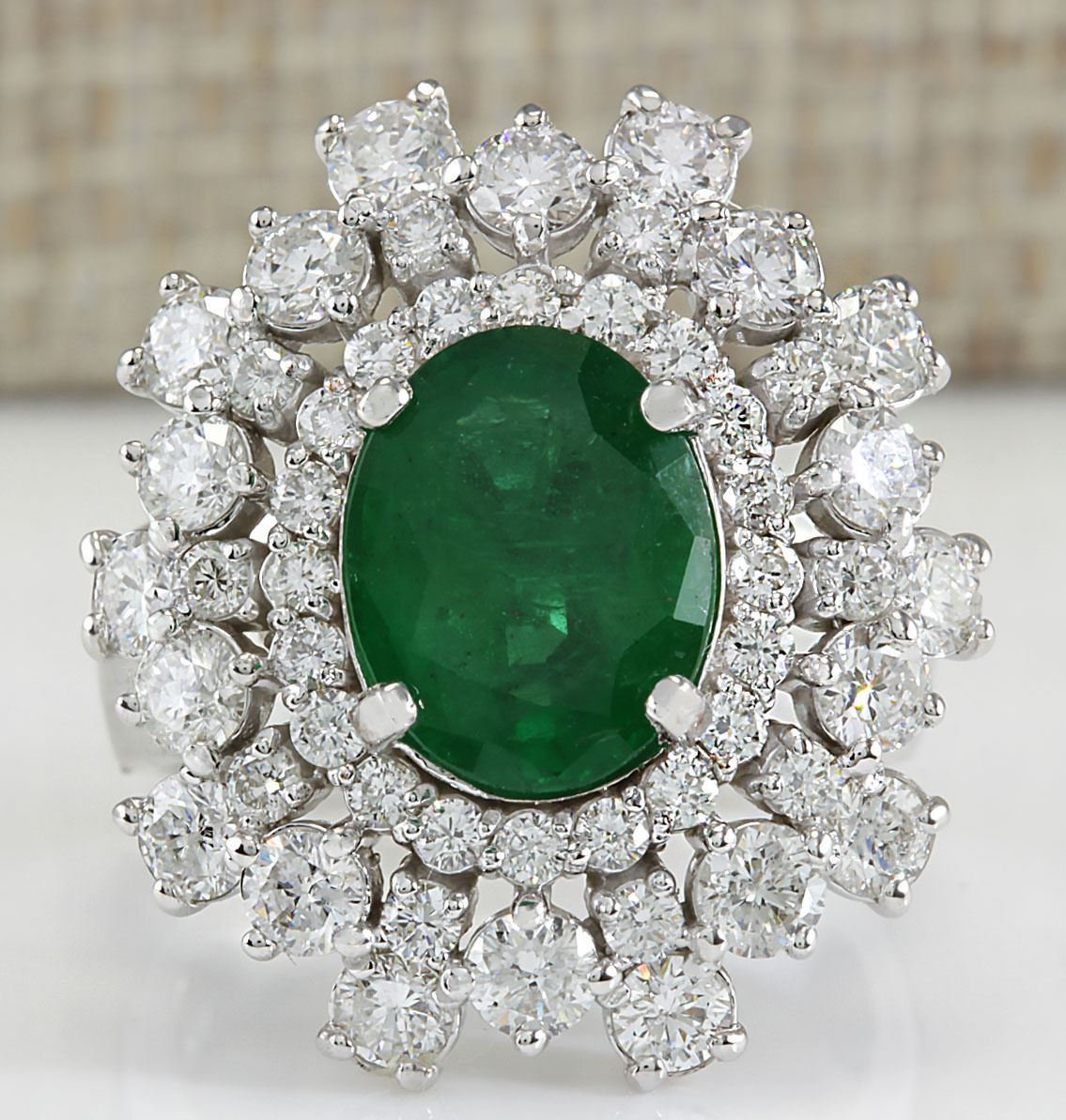 5.71 CTW Natural Colombian Emerald And Diamond Ring In 14K White Gold