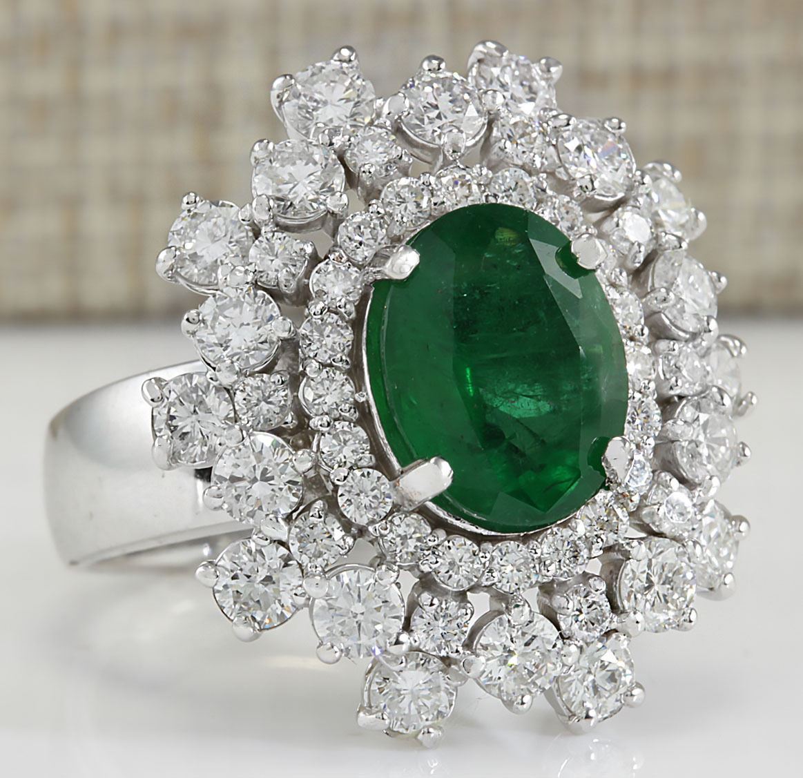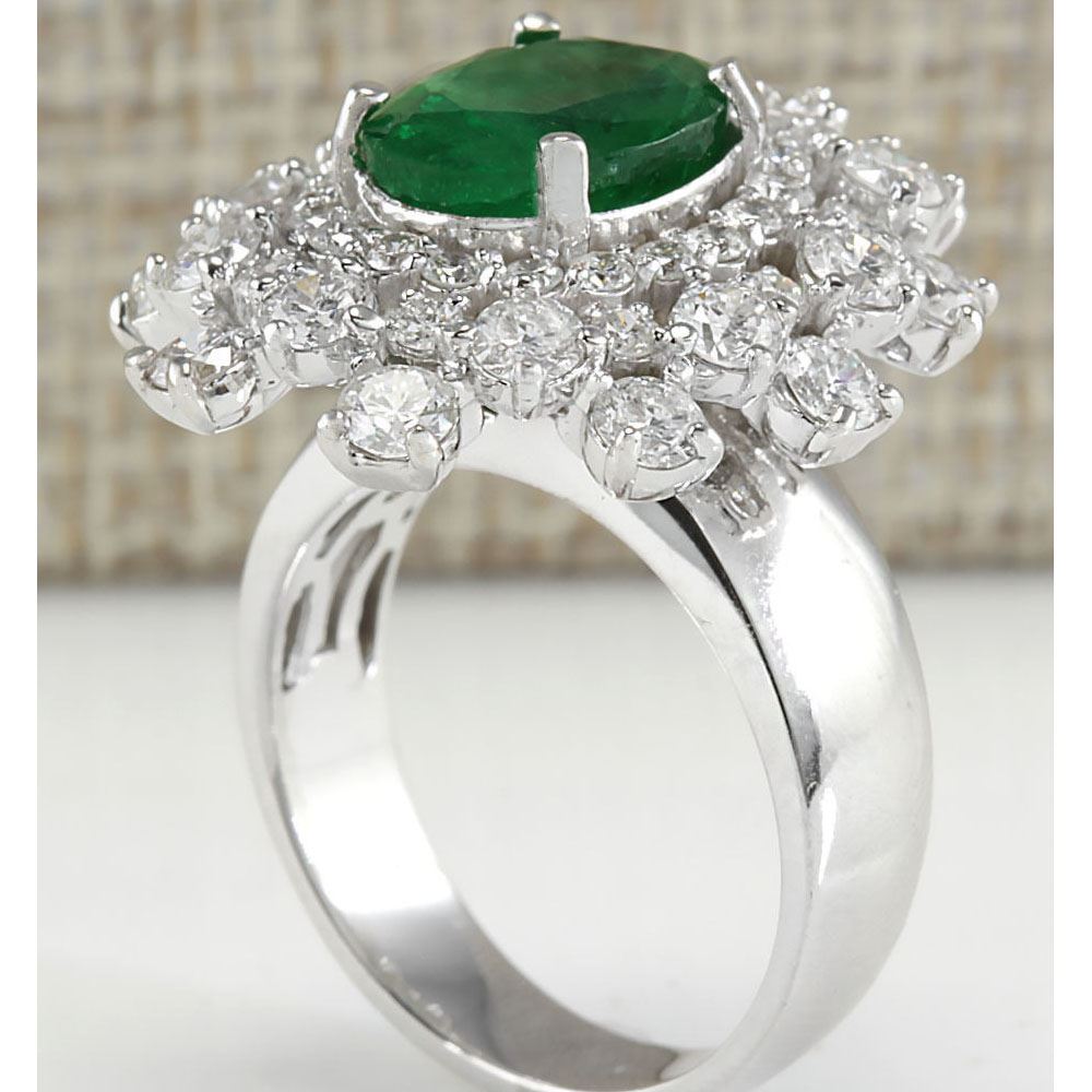 5.71 CTW Natural Colombian Emerald And Diamond Ring In 18K White Gold