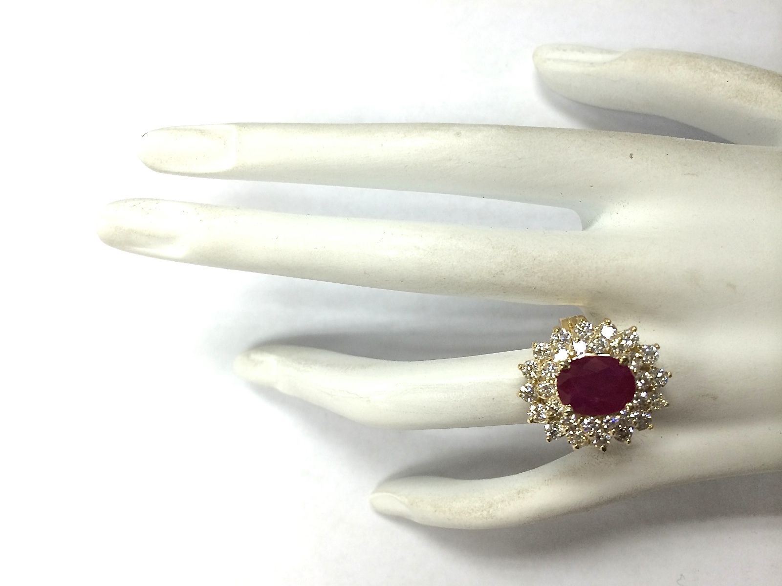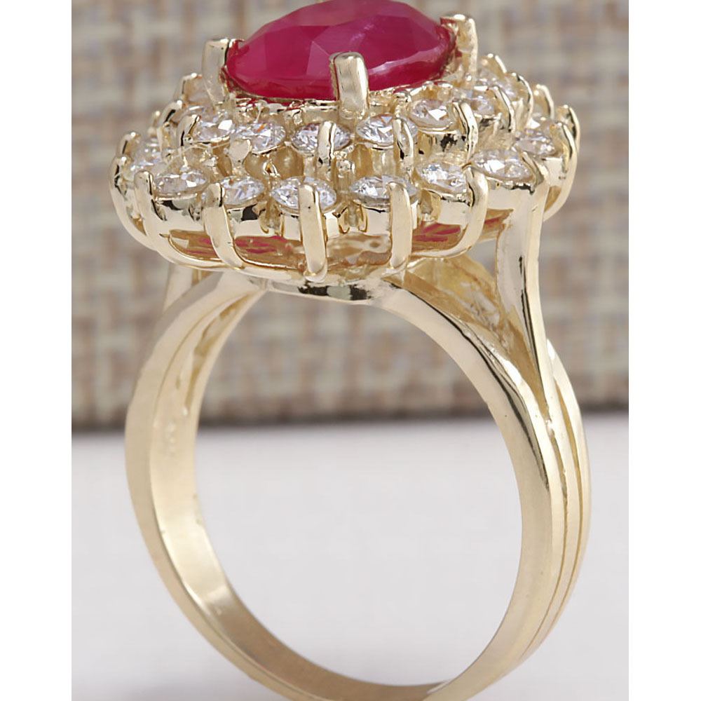 5.72 CTW Natural Ruby And Diamond Ring 14K Solid Yellow Gold