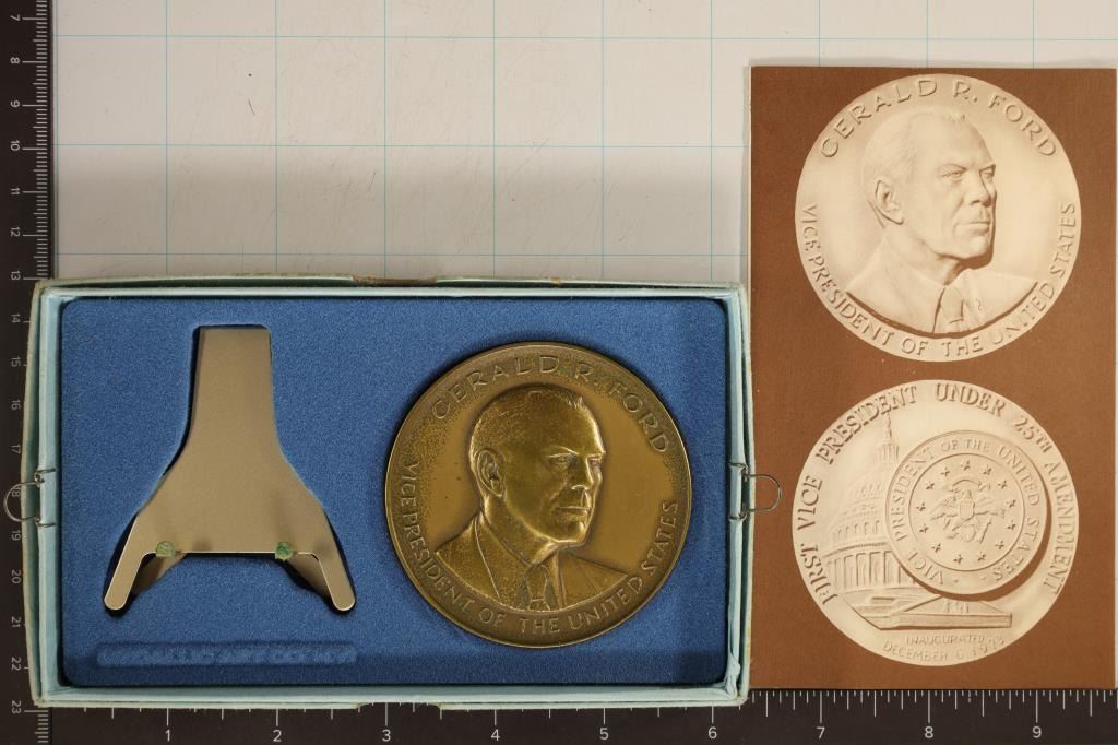 VICE PRESIDENT INAUGURATION MEDAL. IN ORIGINAL MEDALLIC ART COPY BOX WITH STAND AND PAPERWORK.