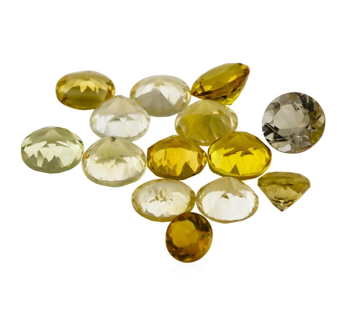 One natural round cut citrine quartz parcel of fourteen with an exact weight of 5.73ctw., clarity is eye clean, slightly yellowish orange, medium to light. Gemological Appraisals Services estimates the retail value at $143.25 GAS Appraised.