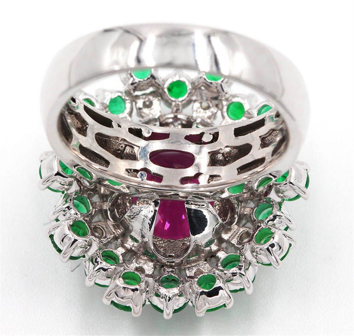One ring featuring: 14KT white gold weighing 9.80 grams containing one pink tourmaline weighing 2.66ct, 20 emeralds weighing 2.20ctw and 30 diamonds weighing 0.88ctw. The pink tourmaline is natural and not enhanced with an oval shape, fine clarity and pin