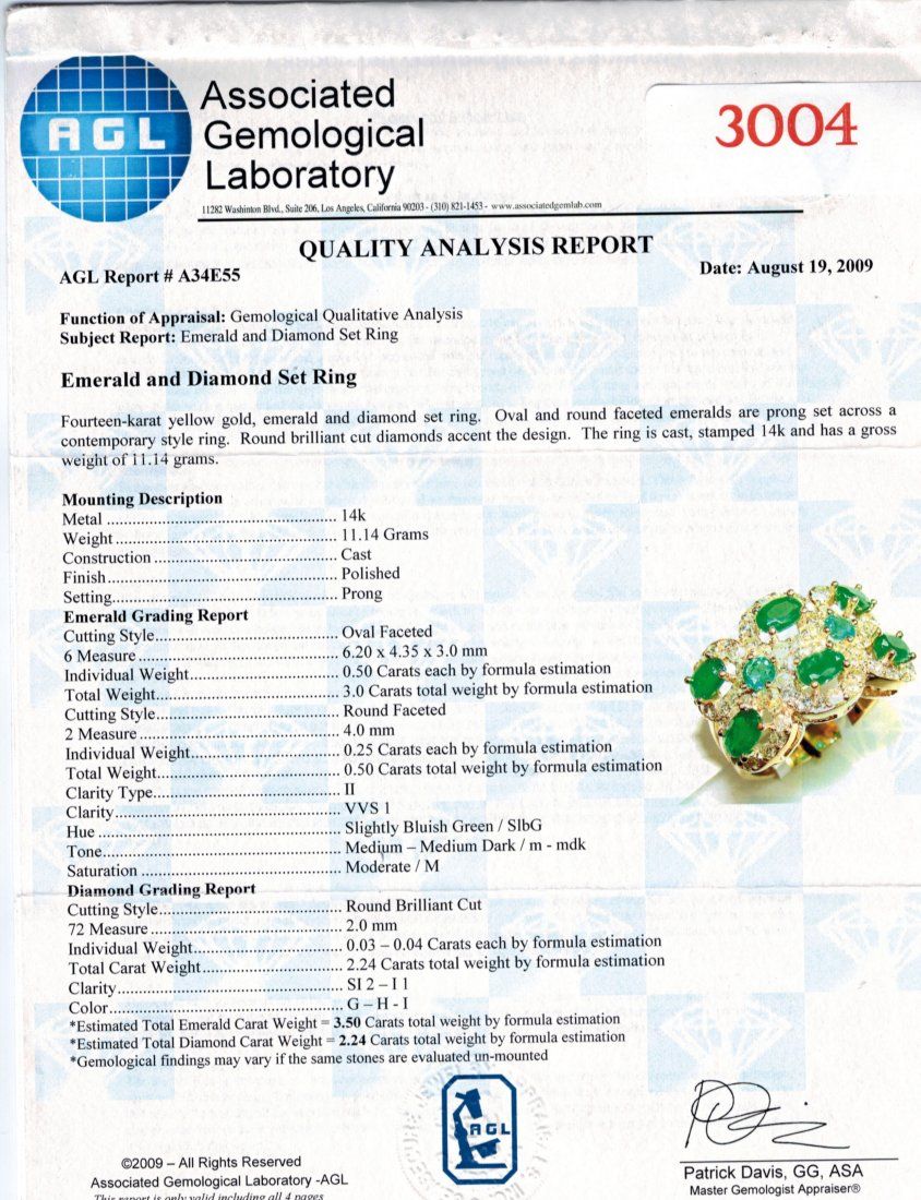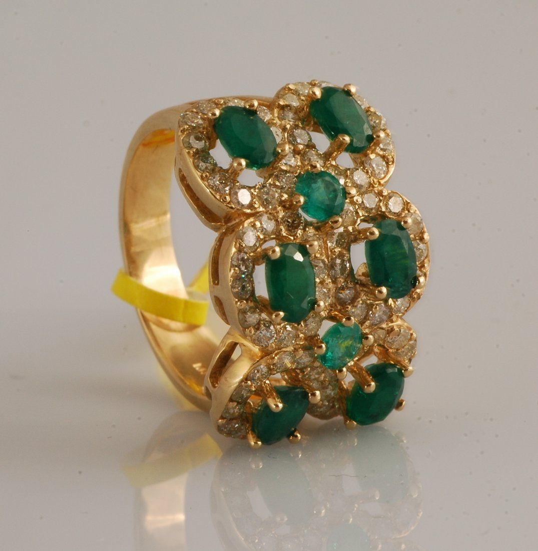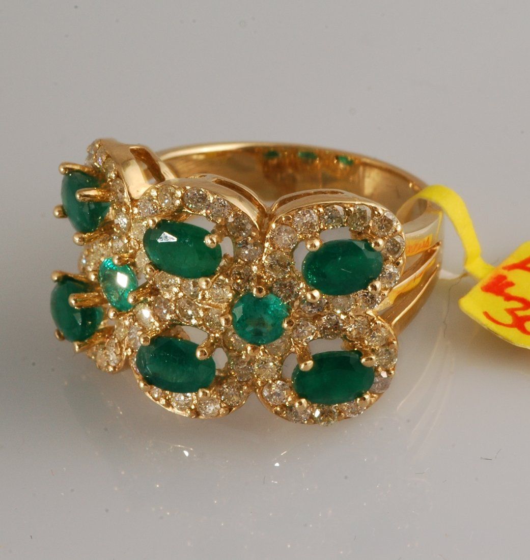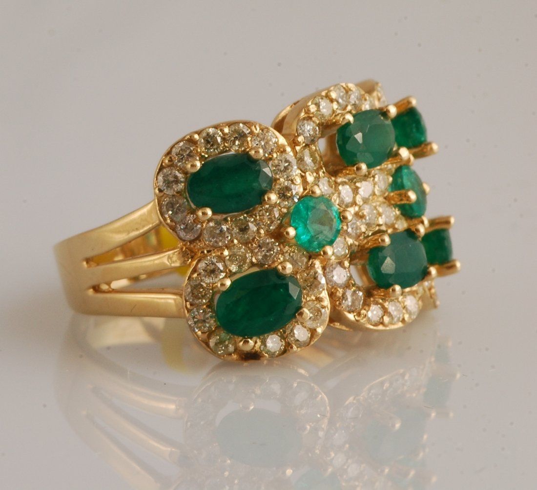 3.5 carat emeralds and 2.24 carats diamonds set in yellow gold.