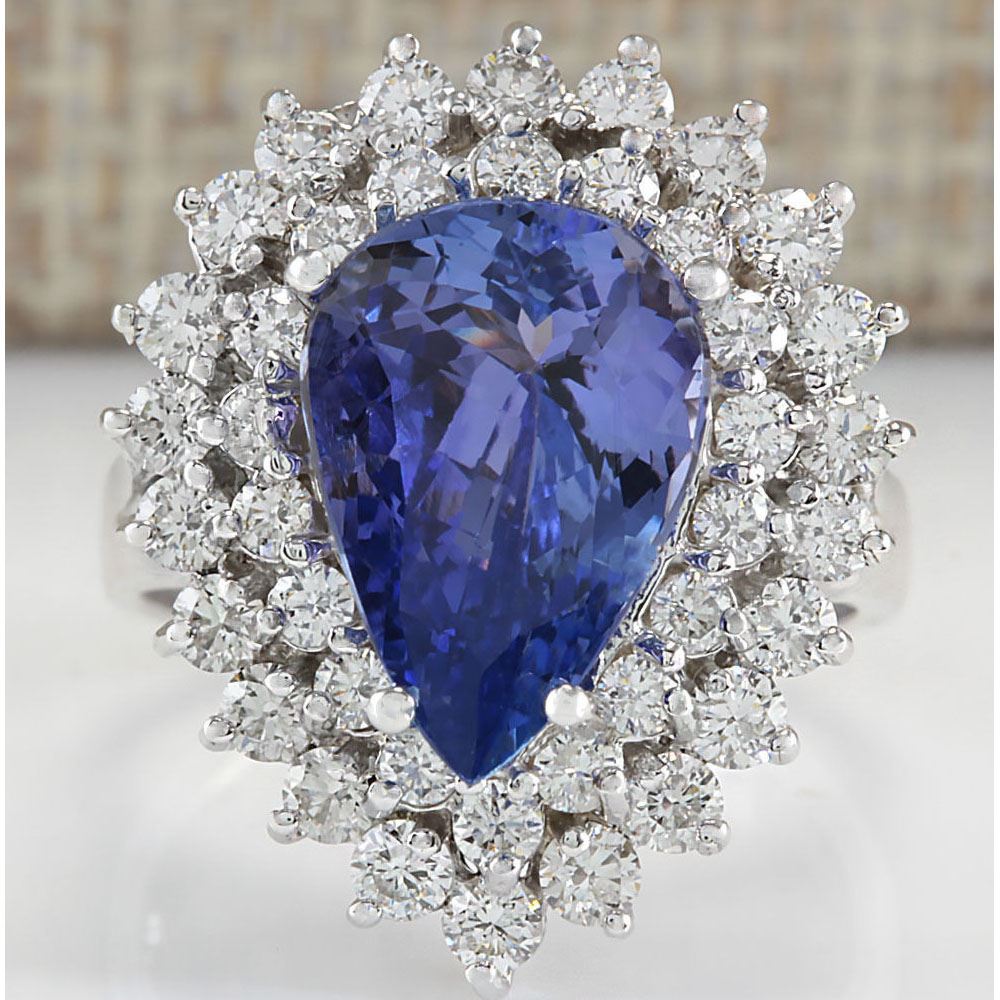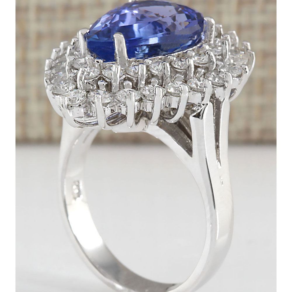 5.75 CTW Natural Tanzanite And Diamond Ring In 18K White Gold