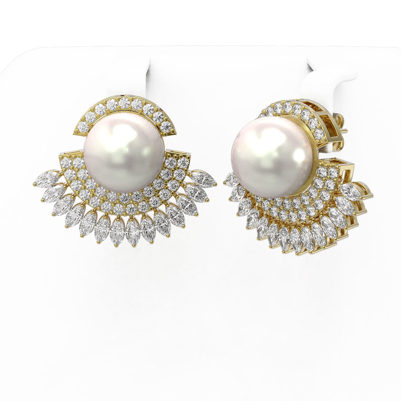 SKU: 50033 ---- 5.76 ctw Marquise Diamond & Pearl Earrings 18K Yellow Gold