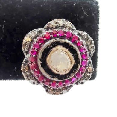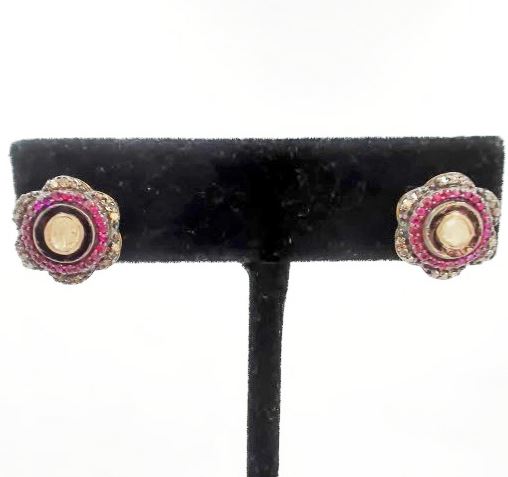 5.77gm Gold Plated / Silver / Ruby / Diamond Uncut Earring / Measurement : 10.4 x 10.3mm / #NSG124
