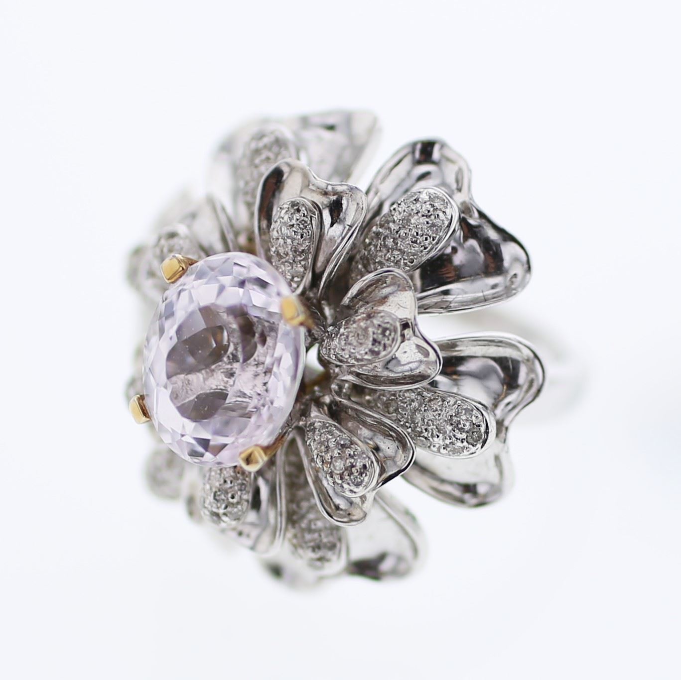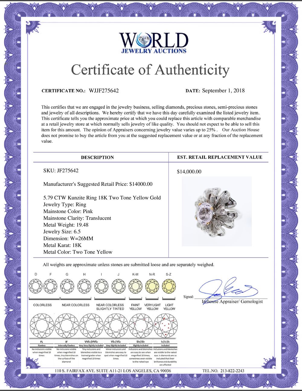 REF-186W2H - JF275642 ---- 5.79 CTW Kunzite & White Round Diamond Ring 18K Two Tone Yellow Gold