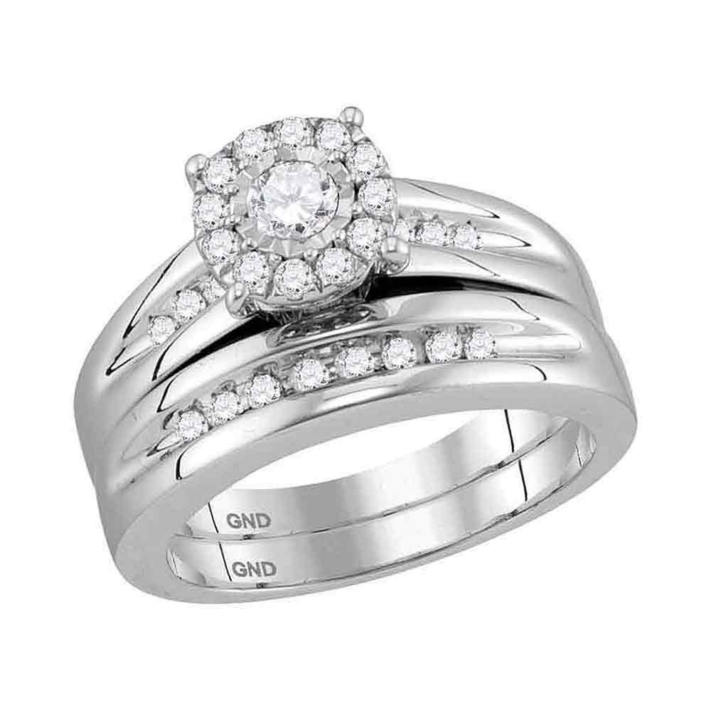 10kt White Gold His & Hers Diamond Solitaire Matching Bridal Wedding Ring Band Set 5/8 Cttw