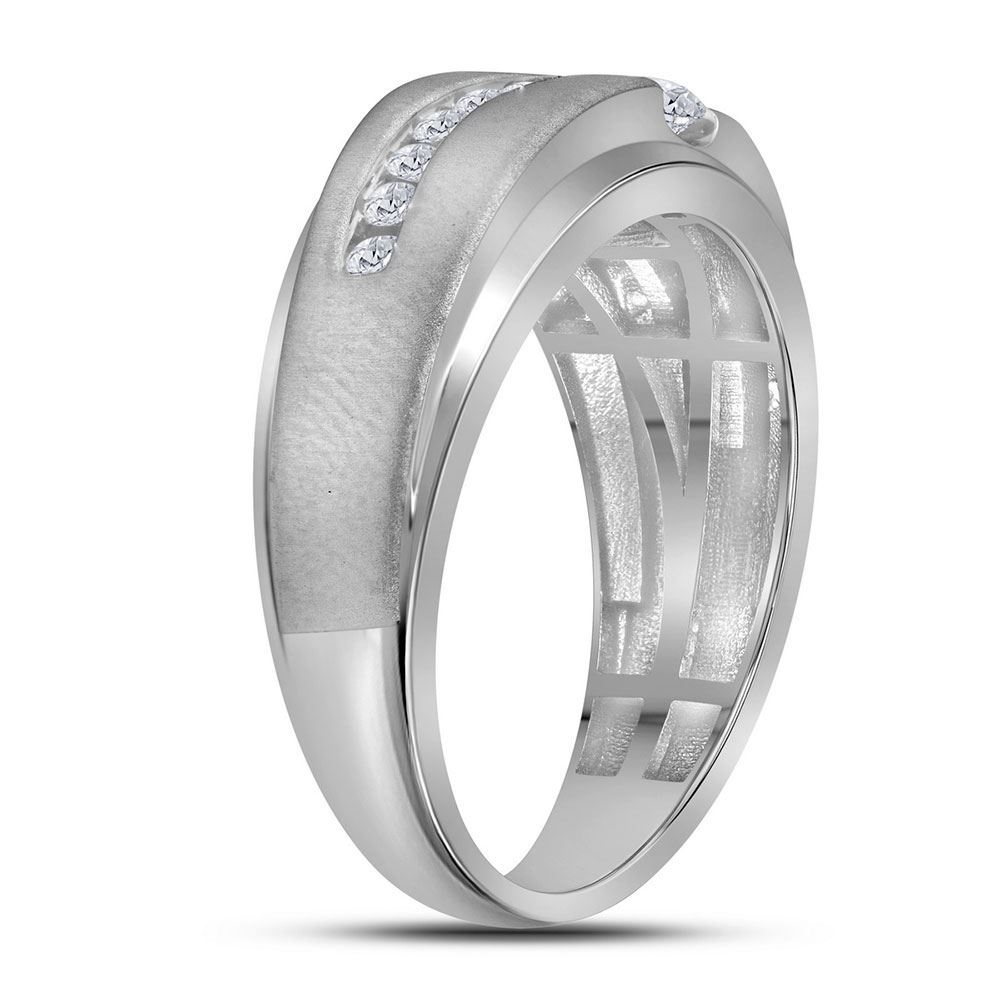 REF-65W9F ---- 5/8 CTW Mens Round Diamond Wedding Ring 10kt White Gold