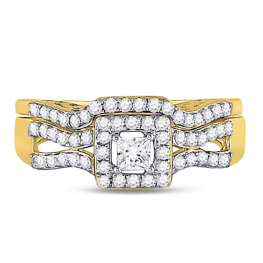 14kt Yellow Gold Womens Princess Diamond Split-shank Bridal Wedding Engagement Ring Band Set 5/8 Cttw
