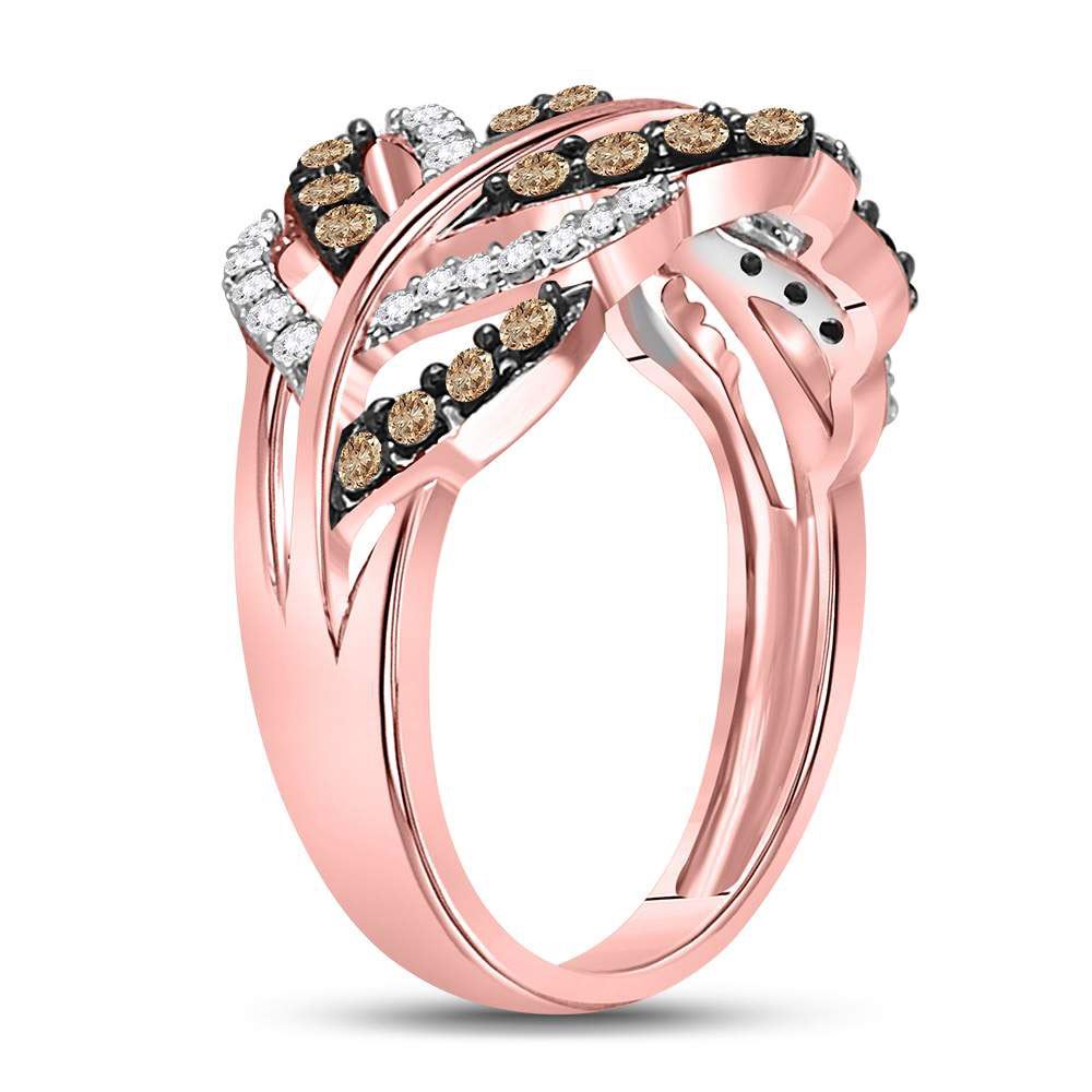 10kt Rose Gold Womens Round Brown Diamond Vine Leaf Ring 5/8 Cttw