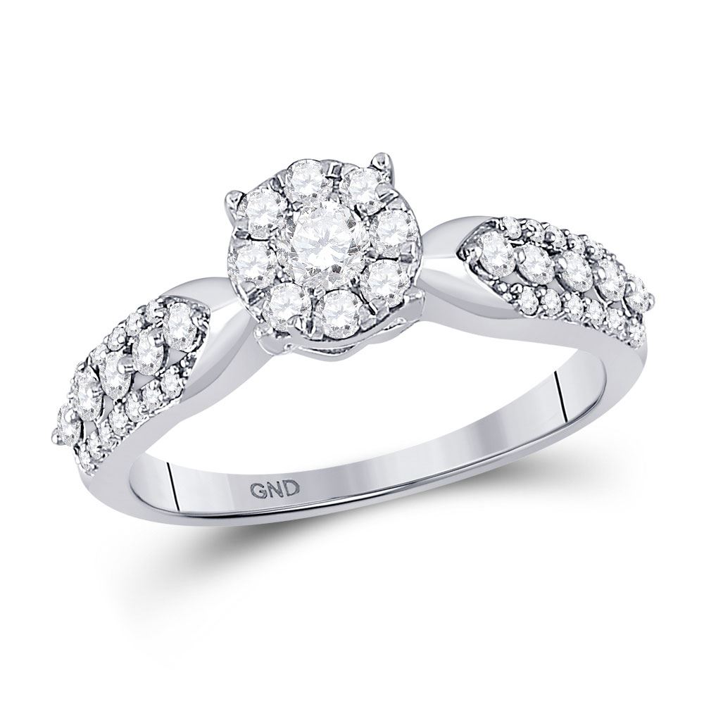 REF-39K3R ---- 5/8 CTW Round Diamond Cluster Bridal Wedding Engagement Ring 10kt White Gold