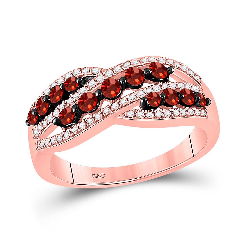 10kt Rose Gold Womens Round Red Color Enhanced Diamond Crossover Fashion Ring 5/8 Cttw