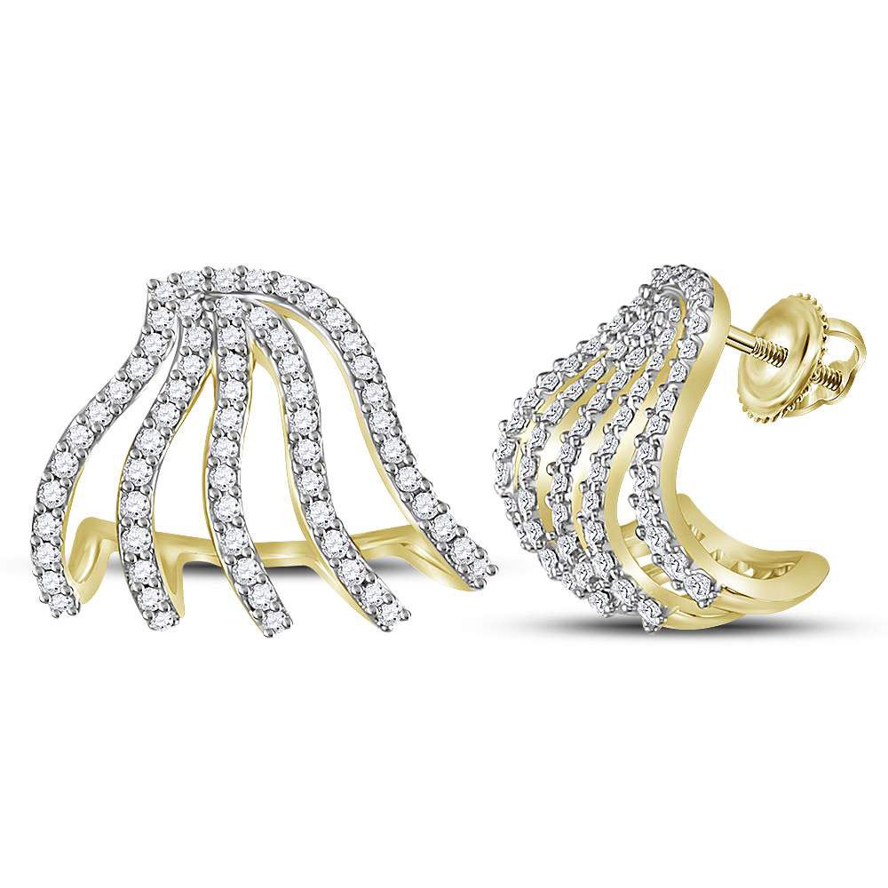 REF-54V5Y - 5/8 CTW Womens Round Diamond Lobe Half Hoop Earrings 10kt Yellow Gold - REF-54V5Y
