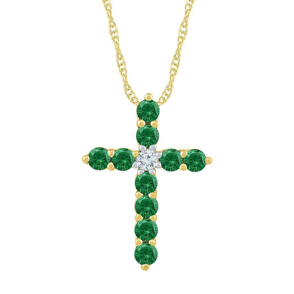 REF-15X2T - 5/8 CTW Womens Round Lab-Created Emerald Cross Pendant 10kt Yellow Gold - REF-15X2T