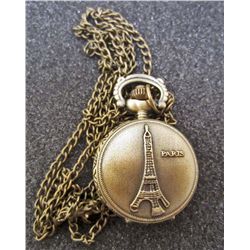 EIFFEL TOWER PARIS BRONZE POCKET WATCH WITH CHAIN