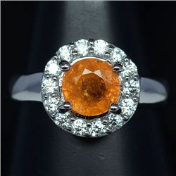 Beautiful white gold over sterling silver ring with Spessartite Garnet and white Topaz. The ring is a size 7.75.