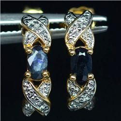 PAIR OF GOLD OVER STERLING EARRINGS SAPPHIRE & DIAMONDS