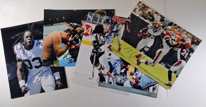 Pittsburgh's Lynn Swann signed 8x10 Photo of Sports Illust Cover (Jan 26, 76), Evgeni Malkin Pittsburgh Penguins signed 8x10, Duane 'Bang' Ludwig UFC Strikeforce Pride signed 8x10, & 2 different signed 8x10's by Cleveland Browns Trent Richardson #33. No COA's. Est. Value $110.00 - $130.00.