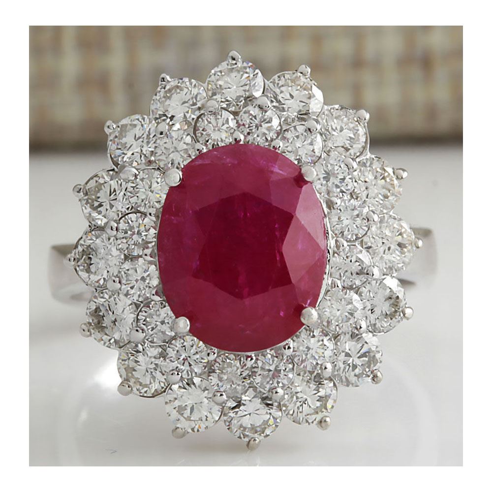 5.80 CTW Natural Ruby And Diamond Ring 14K Solid White Gold