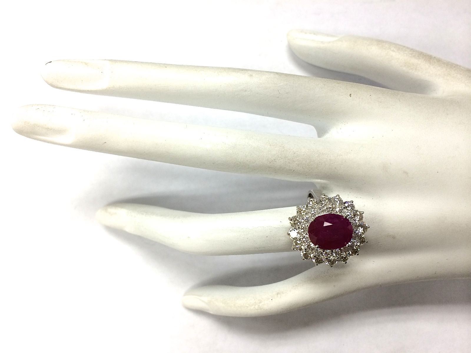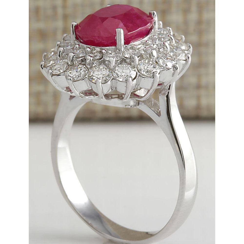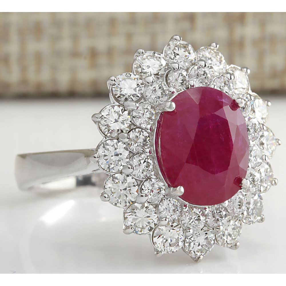5.80 CTW Natural Ruby And Diamond Ring 18K Solid White Gold