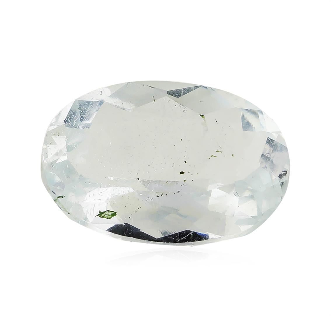 One natural oval cut aquamarine with an exact weight of 5.80ct., clarity is slightly included, slightly grayish greenish blue. Gemological Appraisals Services estimates the retail value at $2030 GAS Appraised.