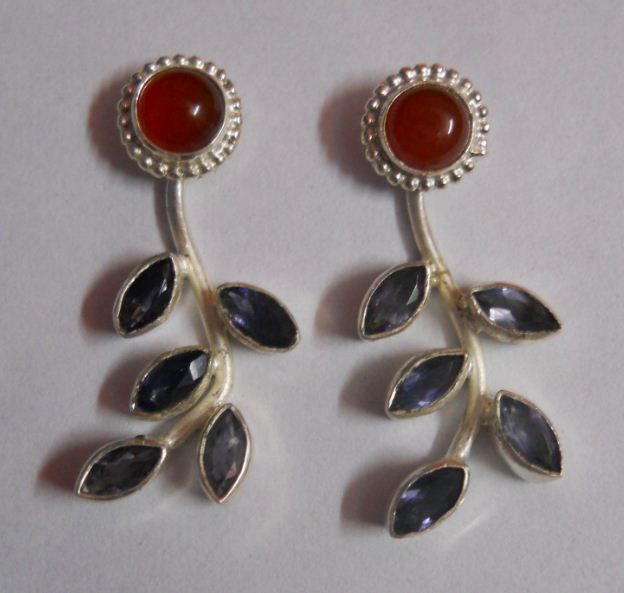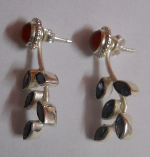 5.810g Earring of Amethyst and Agate Sterling Silver