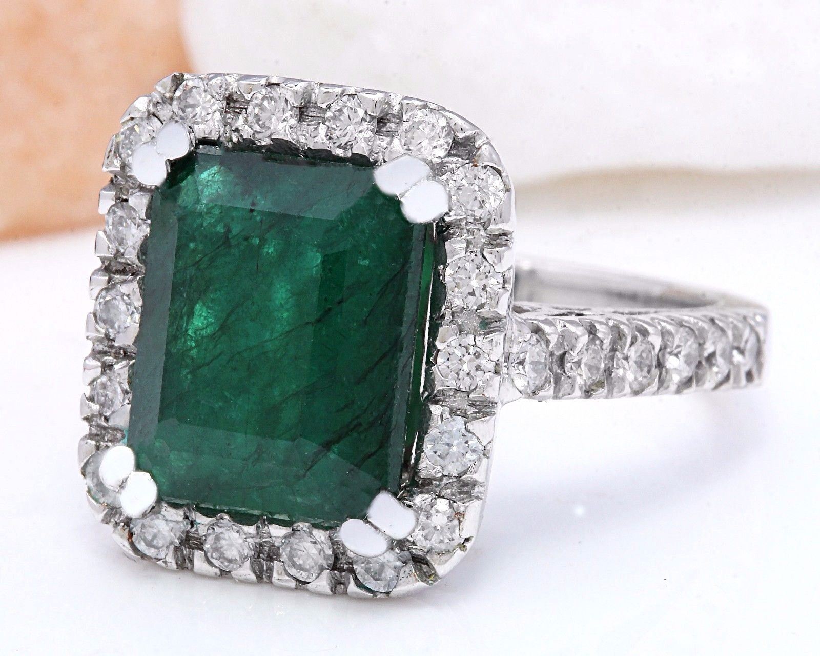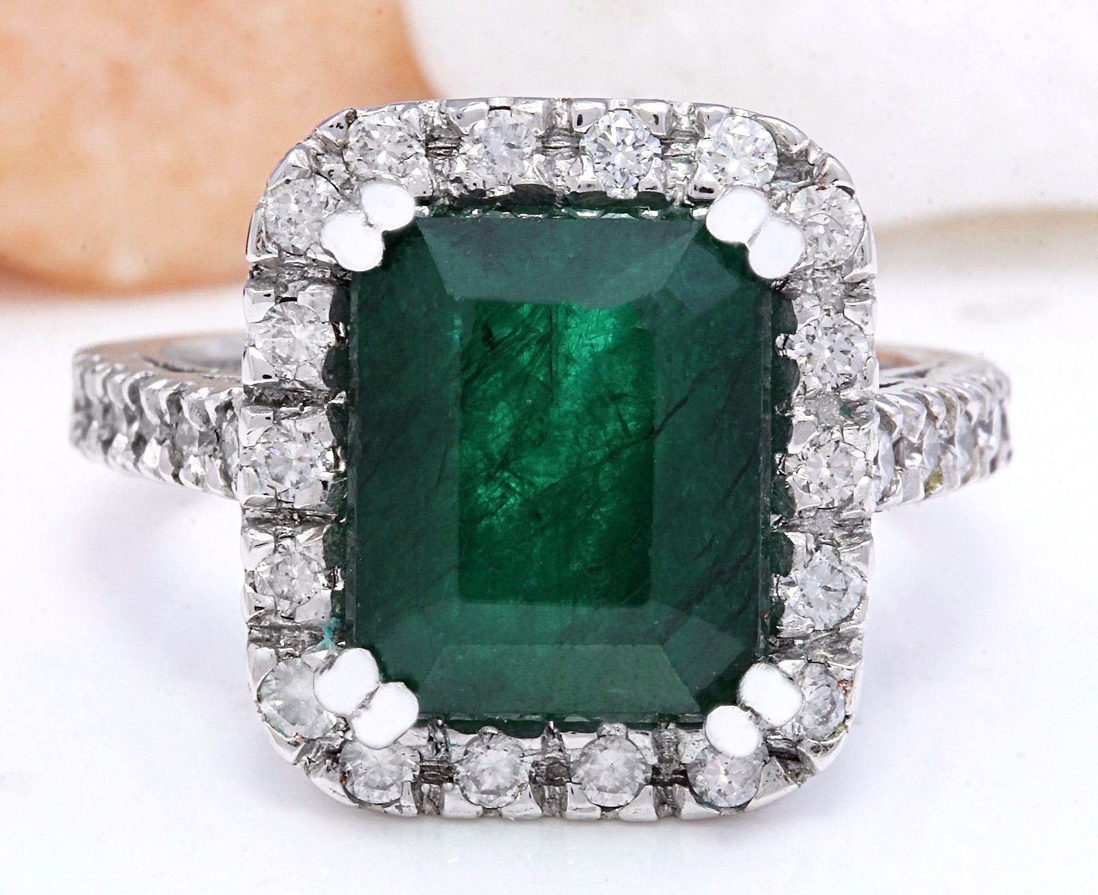 5.82 Carat Natural Emerald 14K Solid White Gold Diamond Ring