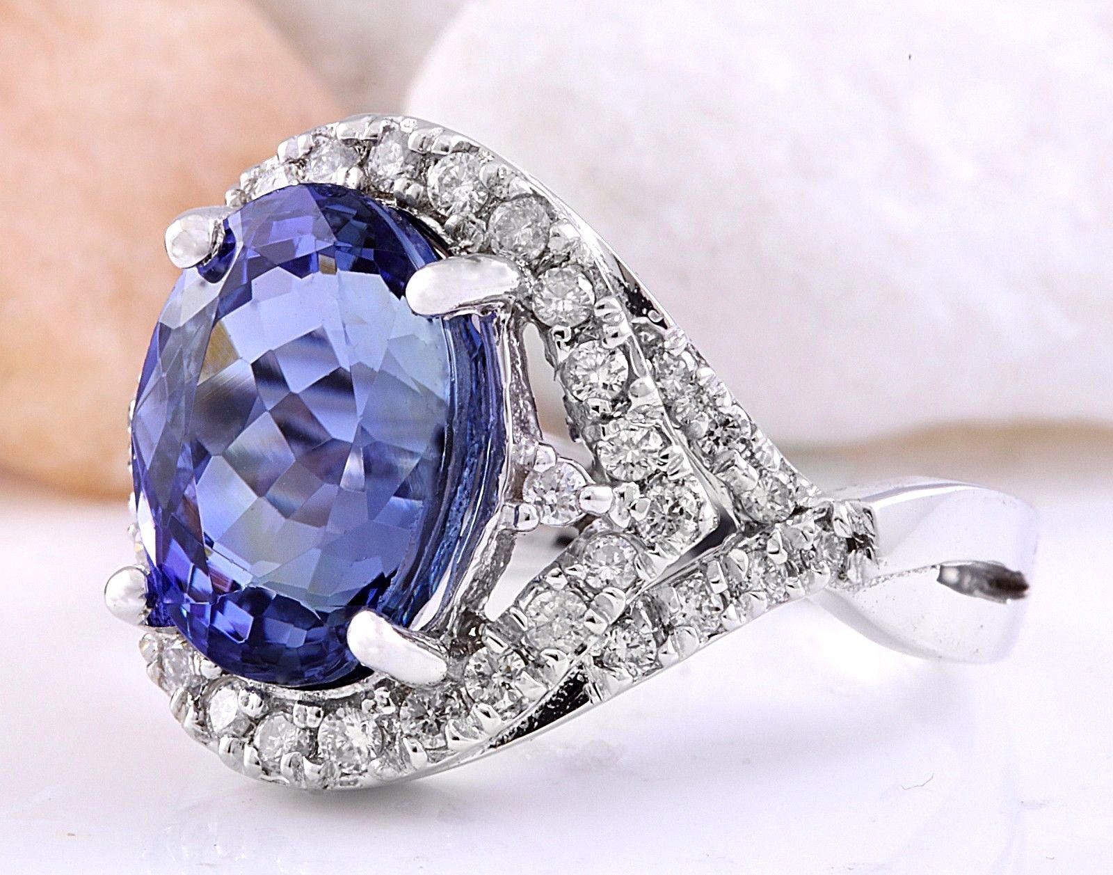 5.82 Carat Natural Tanzanite 14K Solid White Gold Diamond Ring