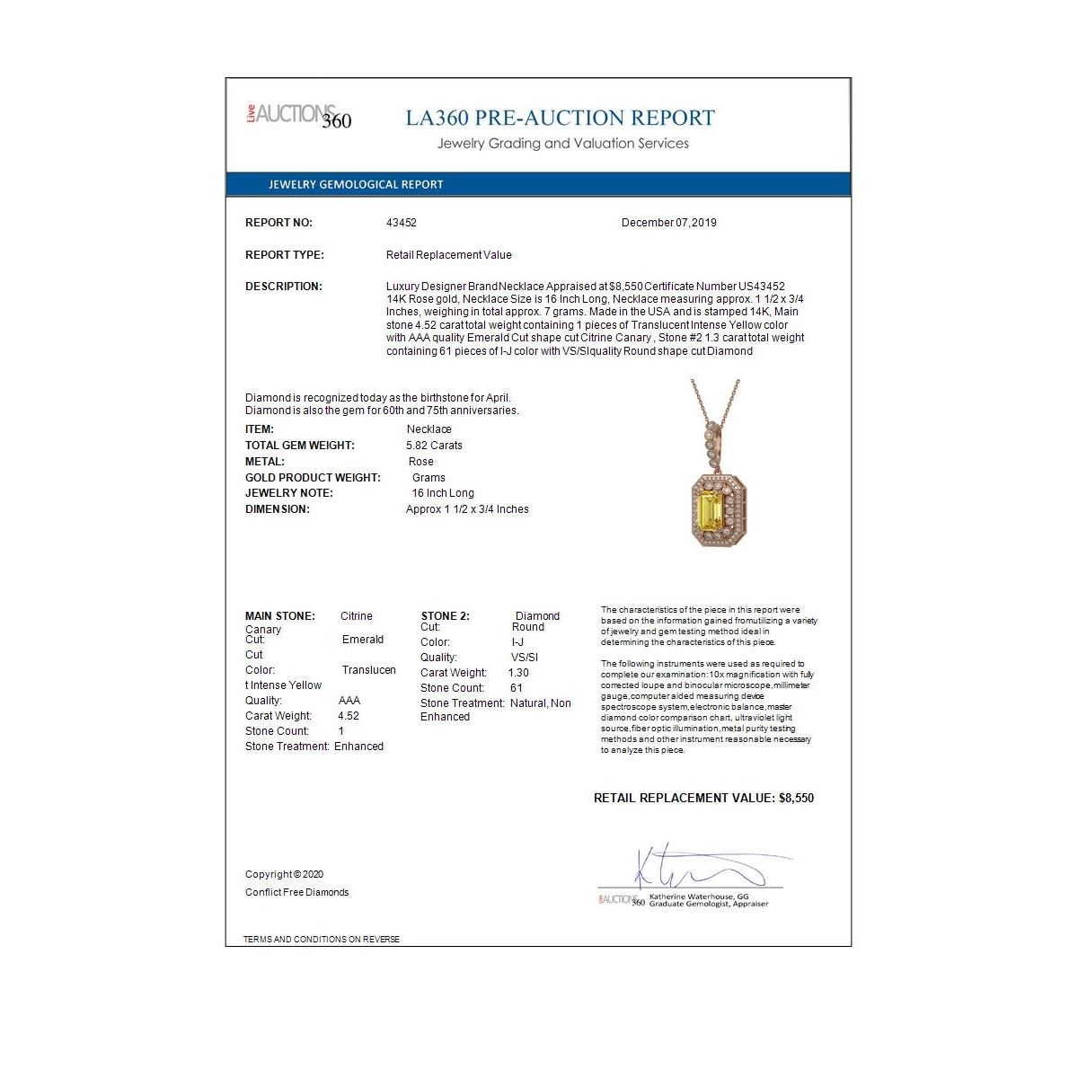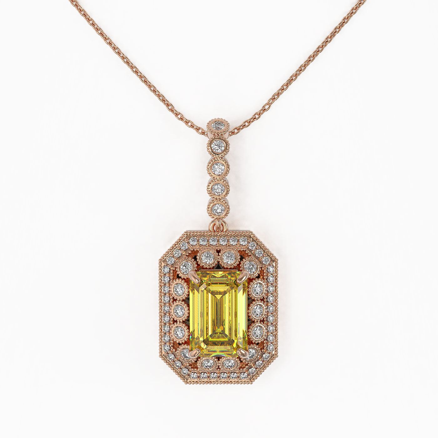 REF-172Y8X - SKU: 43452 ---- 5.82 ctw Canary Citrine & Diamond Victorian Necklace 14K Rose Gold